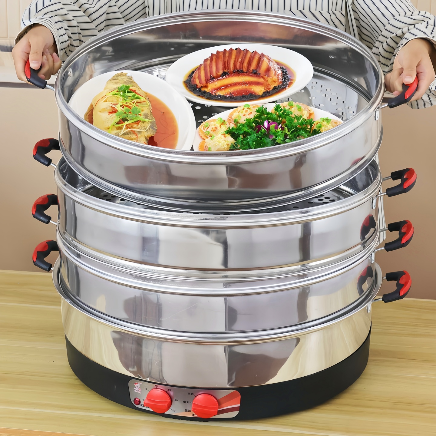 多功能超大电蒸锅大功率不锈钢多层蒸菜包电蒸笼家用商用插电47CM