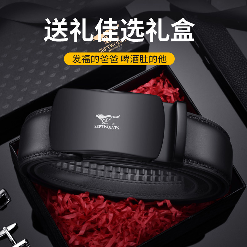 七匹狼皮带男真皮加长自动扣腰带胖加大码牛皮140cm裤带肥佬正品