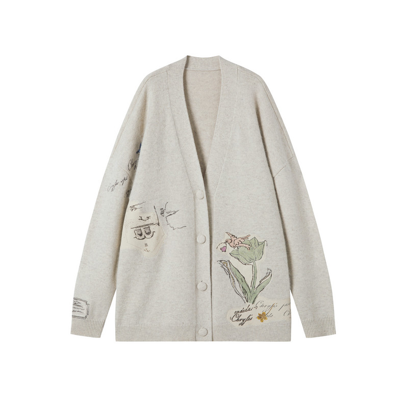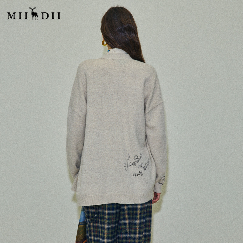 谜底针织开衫长袖2025冬季新品V领中长款亲肤保暖毛衣女254MZ1927