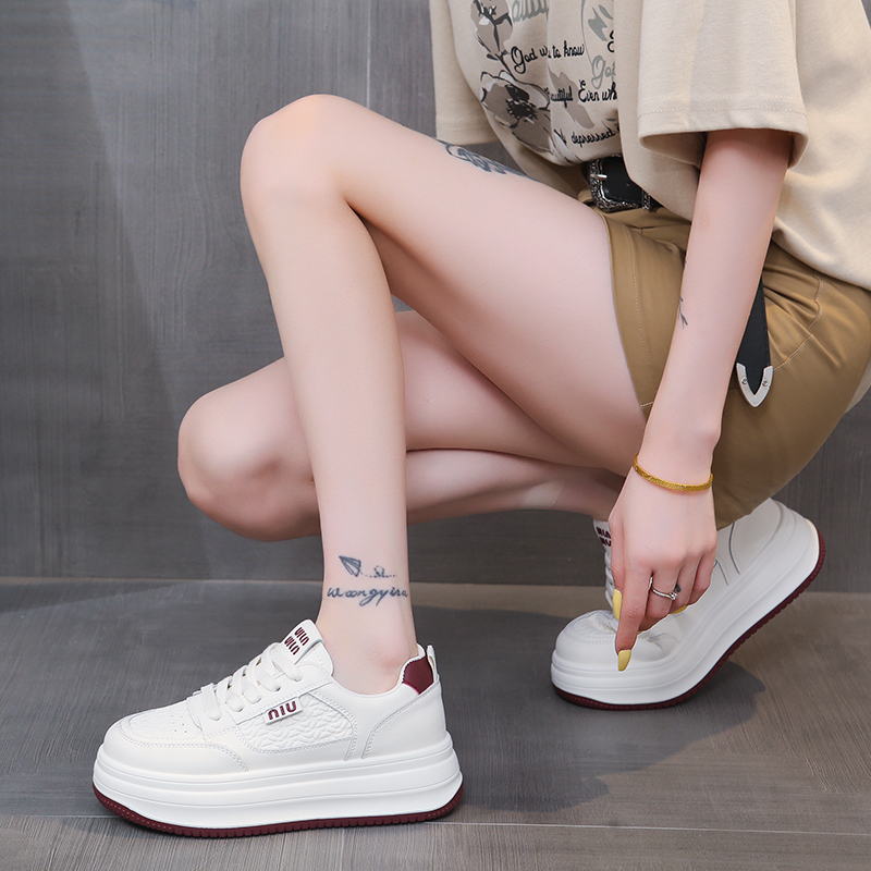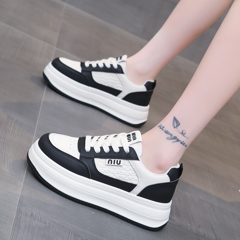 松糕真皮小白板鞋女2025秋季新款厚底运动鞋学生黑白熊猫鞋子34码