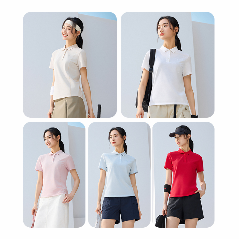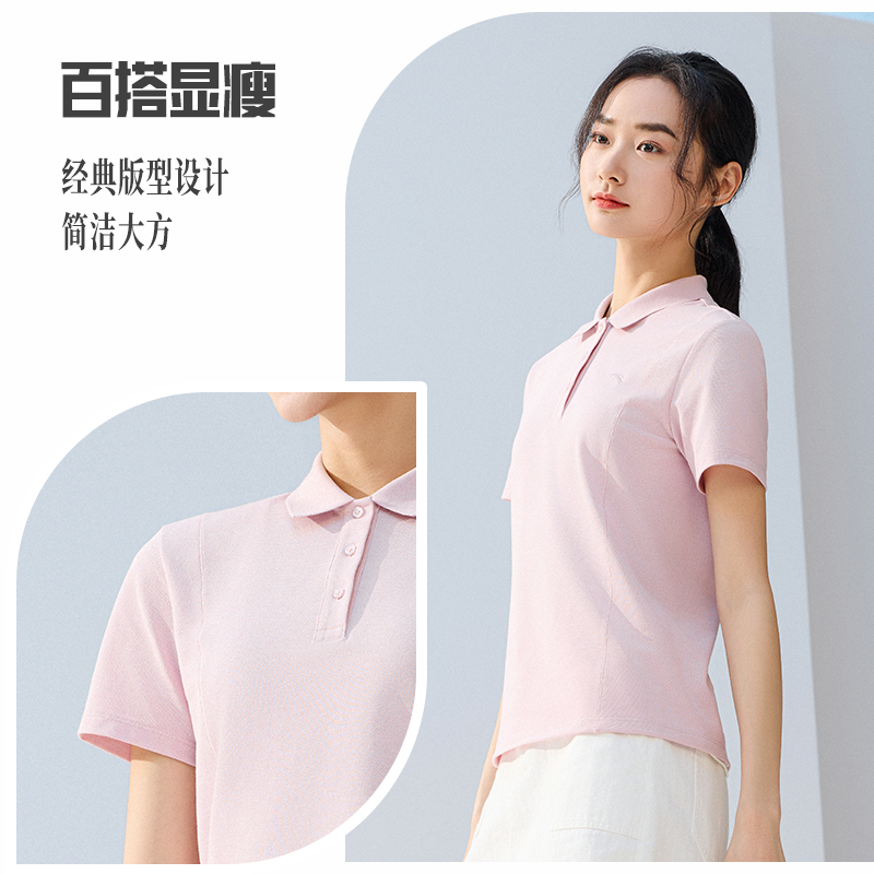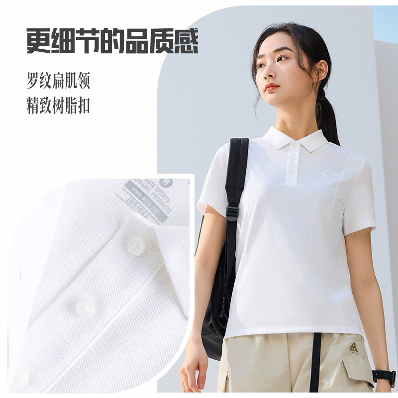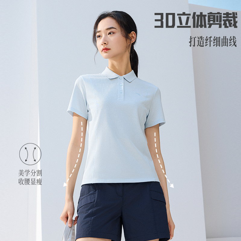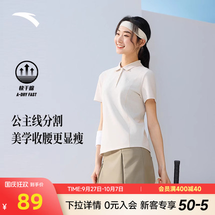 安踏快干polo丨公主线正肩短袖女款夏季新款翻领透气休闲T恤上衣