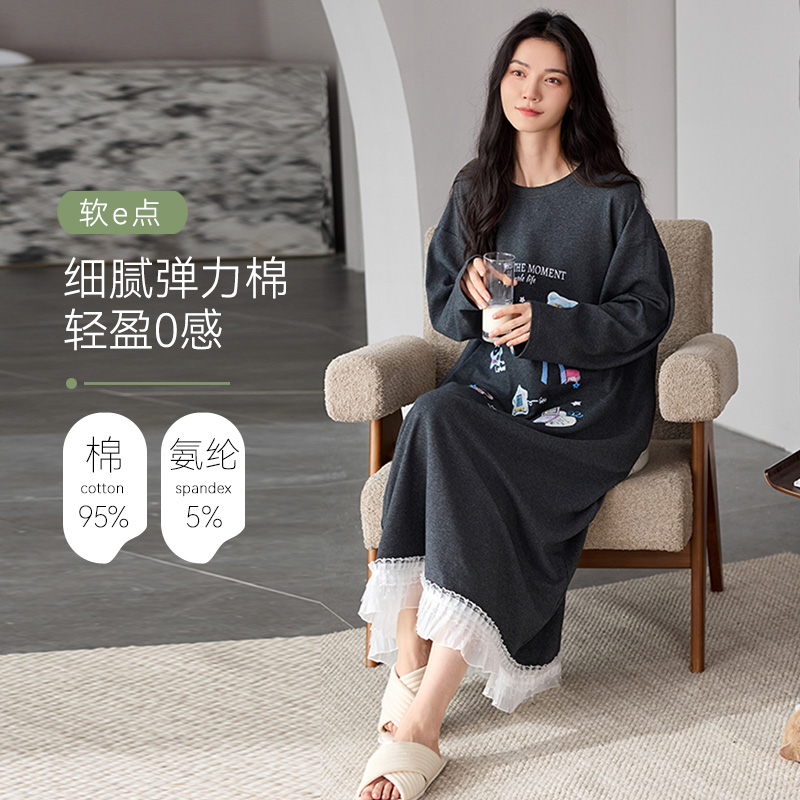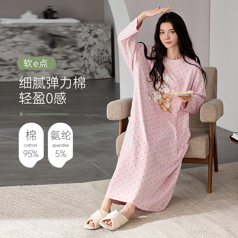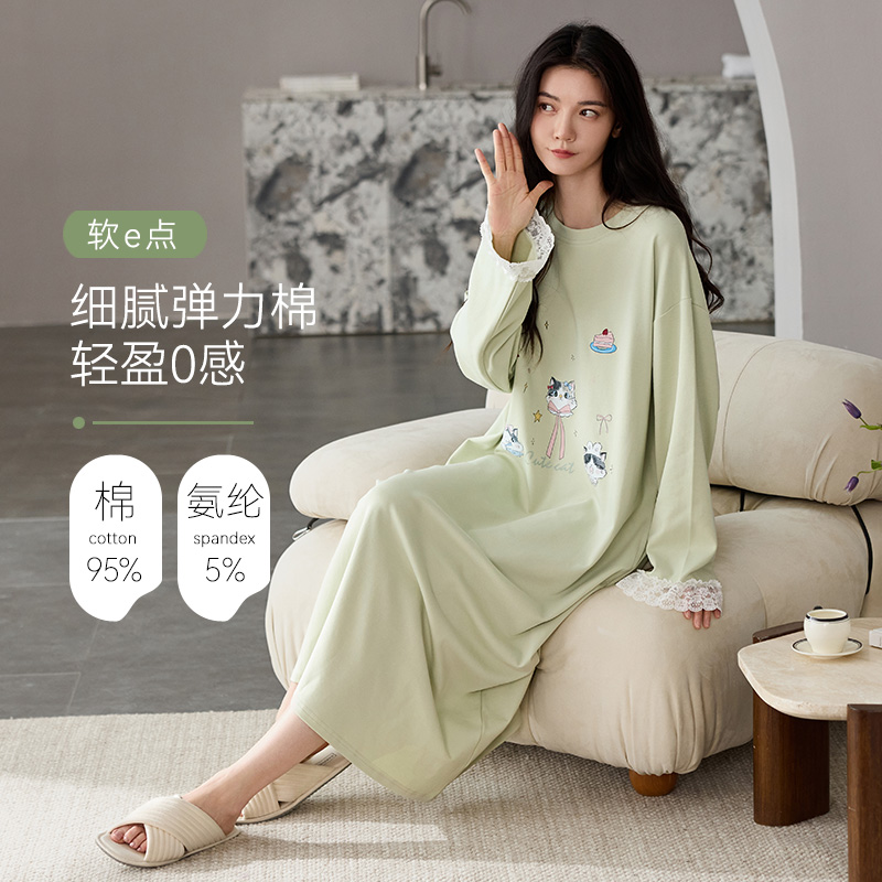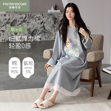 芬腾可安长袖睡裙春秋季长款2025新款家居服纯棉可爱秋款睡衣女士