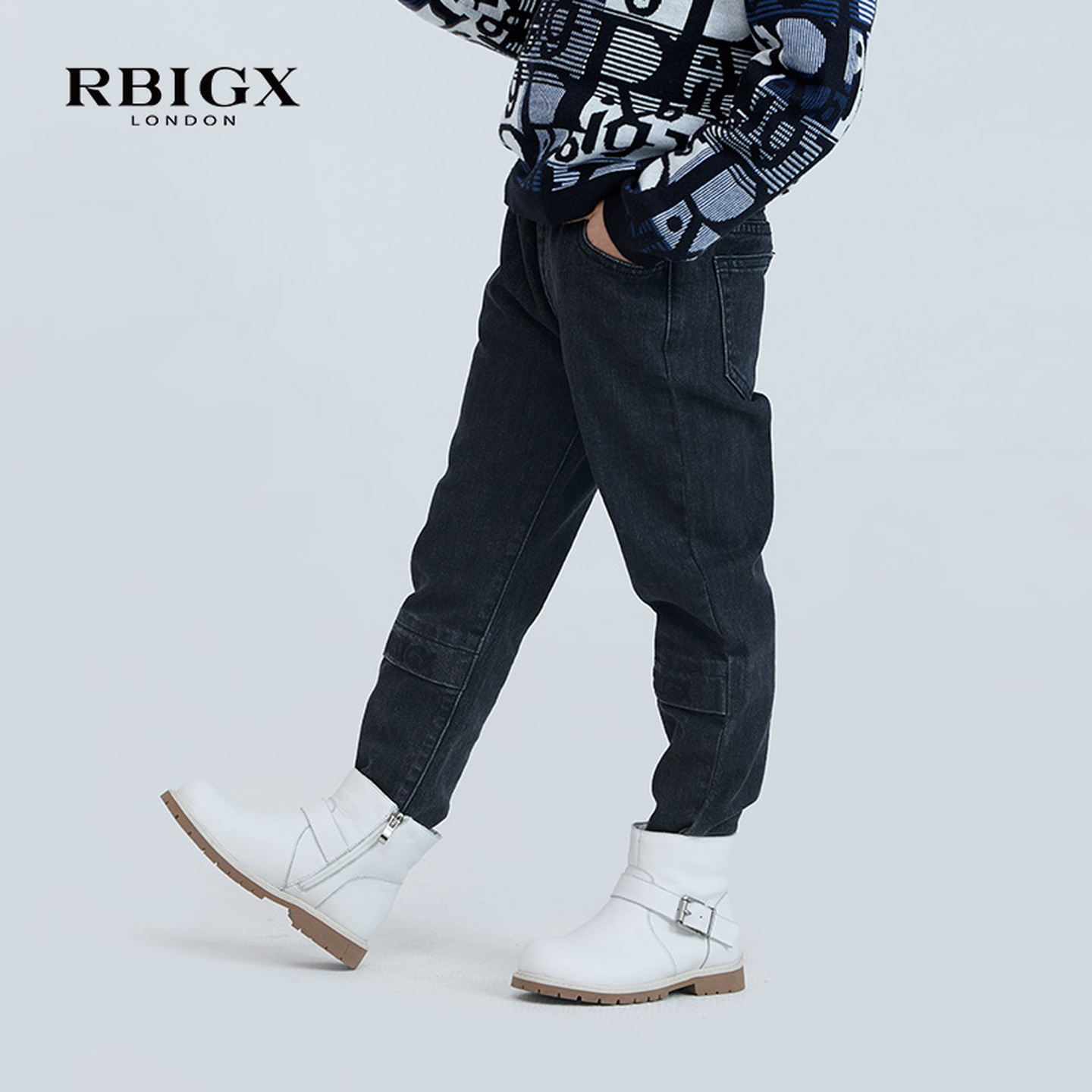 RBIGX瑞比克童装秋季新款男童帅气裤子罗纹腰头水洗牛仔裤