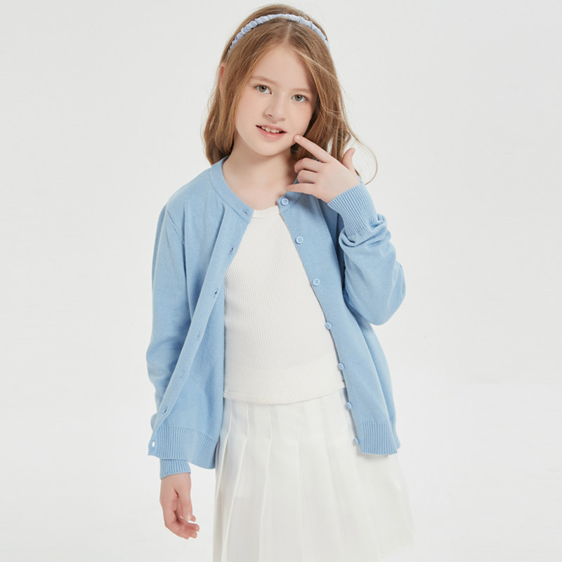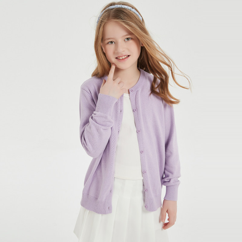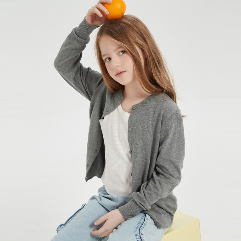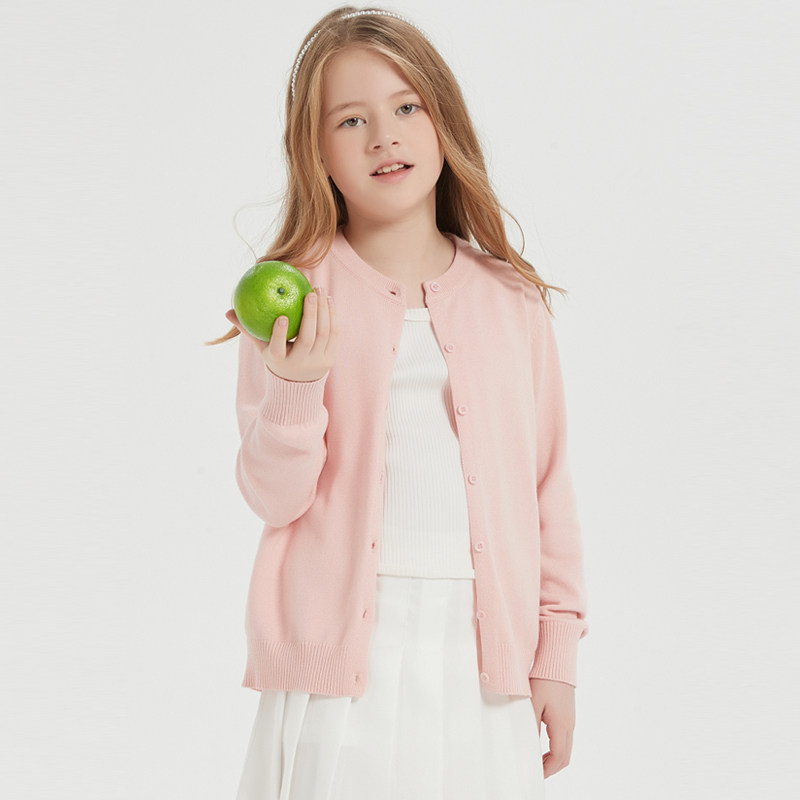 2025女童纯棉圆领针织中大童春秋外套男女童宽松薄开衫毛衣