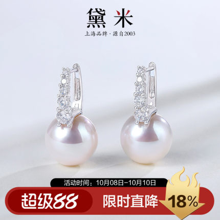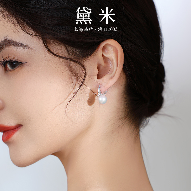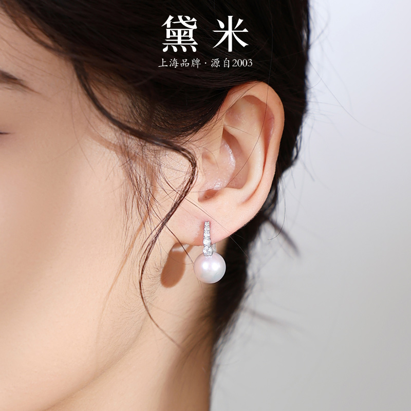 黛米珠宝 漫雪 10-12mm正圆白色淡水珍珠耳环 S925银珍珠耳扣耳钉