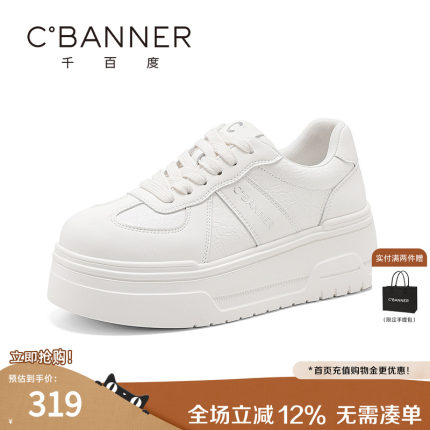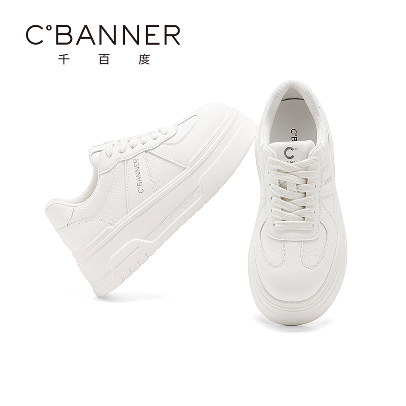 千百度厚底小白鞋女2025秋季新款时尚百搭增高舒适运动休闲鞋板鞋