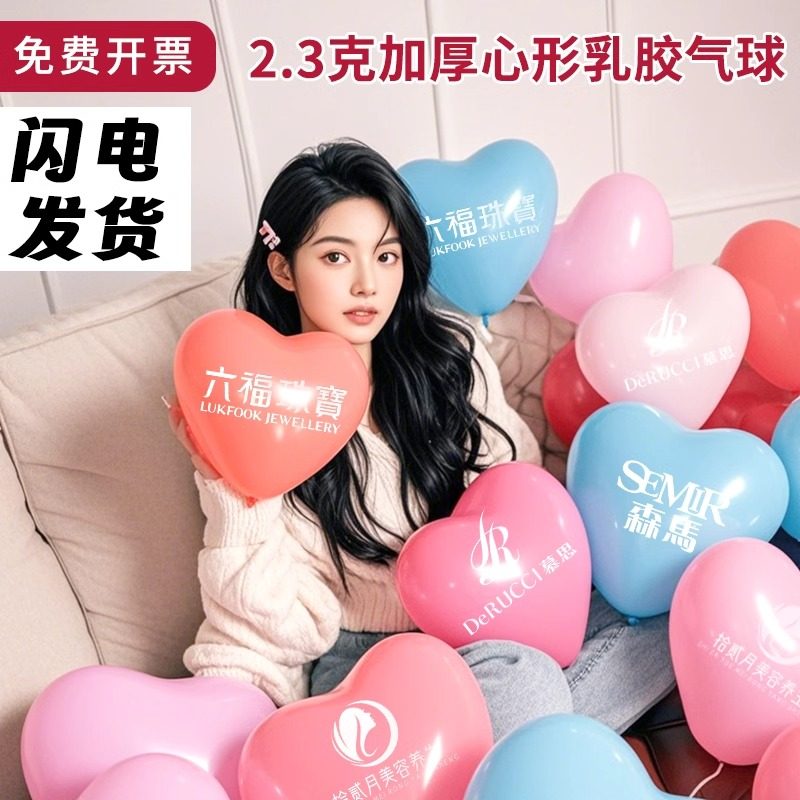 心形气球定制印字logo定做二维码加厚彩色宣传广告气球刻字包邮