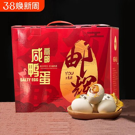高邮咸鸭蛋单黄礼盒装出沙流油即食20枚送礼高端腌制年货节好吃