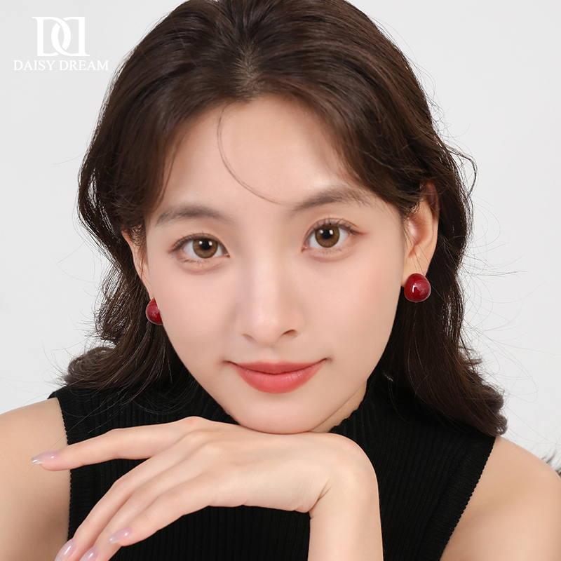 925银针酒红色豆豆耳环轻奢气质