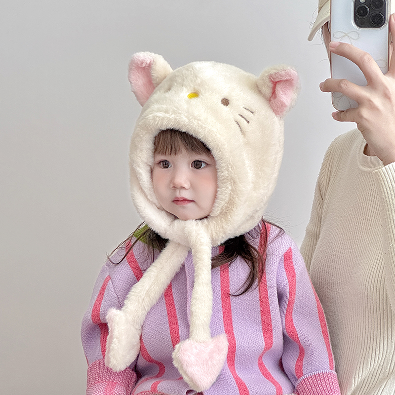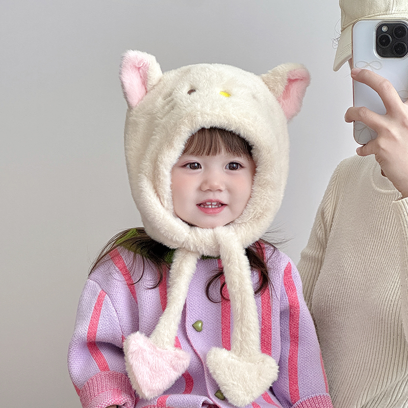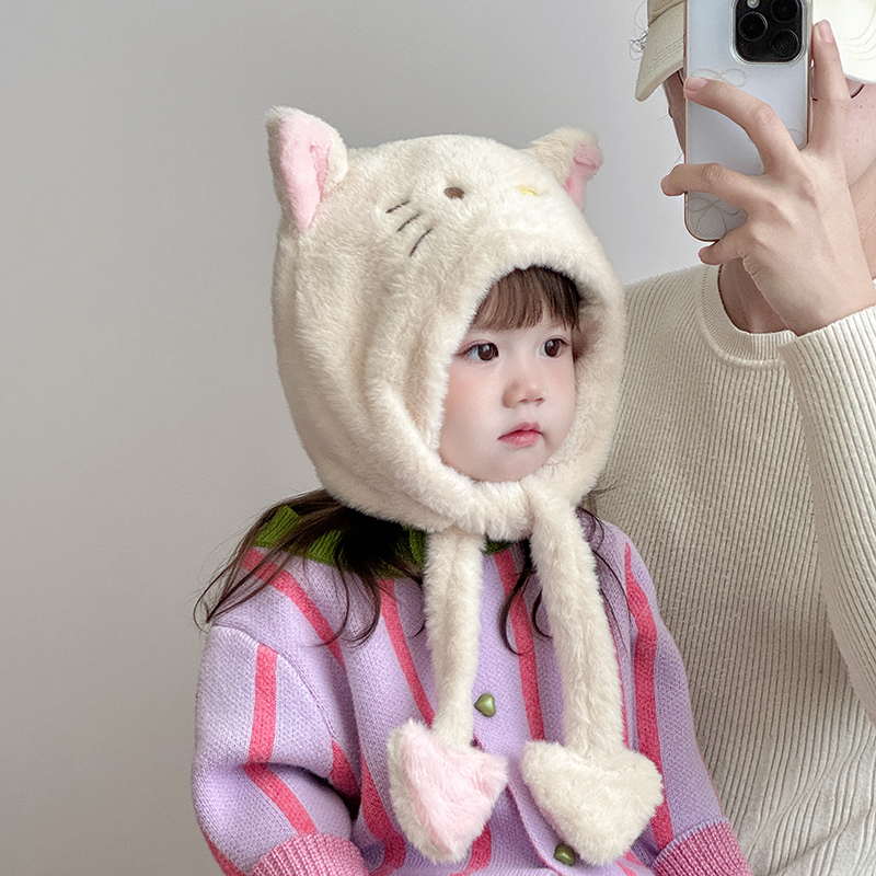 儿童帽子围巾一体帽秋冬季保暖加厚护耳帽女宝宝可爱防风毛绒帽潮