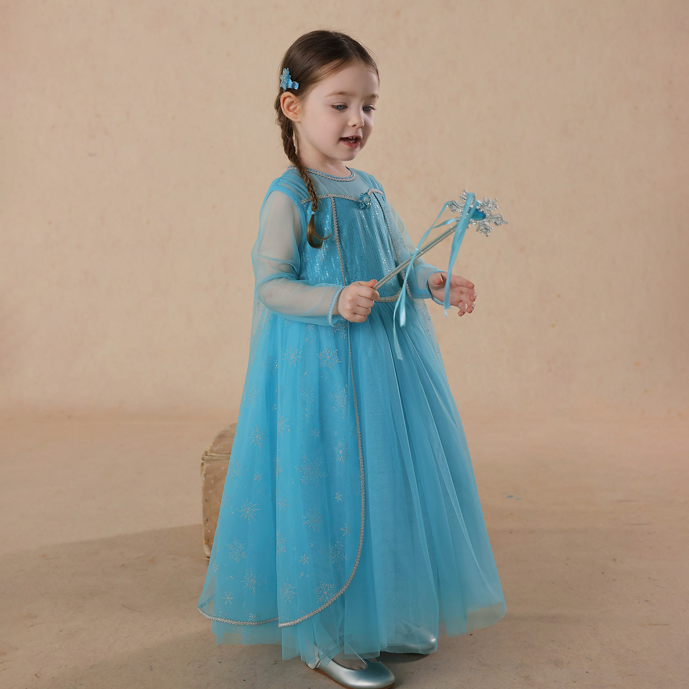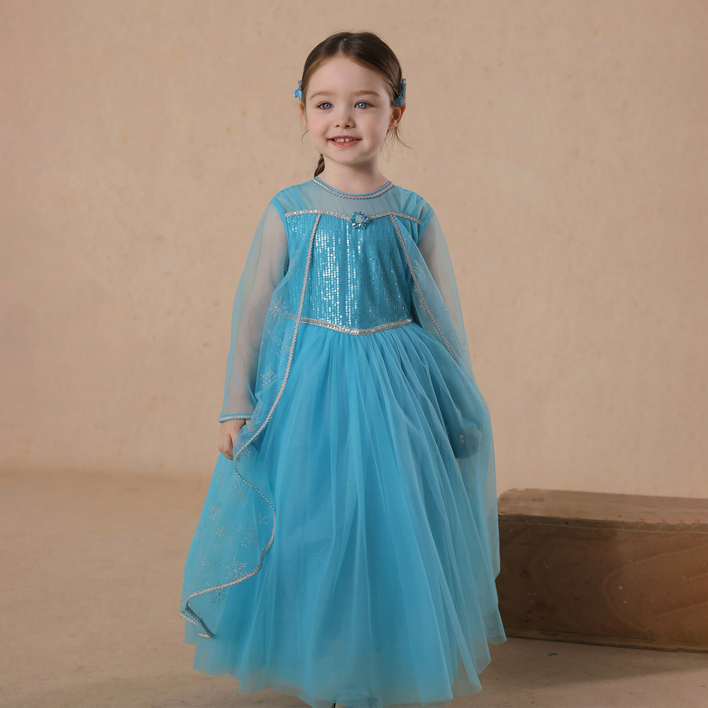 允儿妈女童2025夏季新款艾莎雪花披风连衣裙宝宝六一礼服公主裙潮