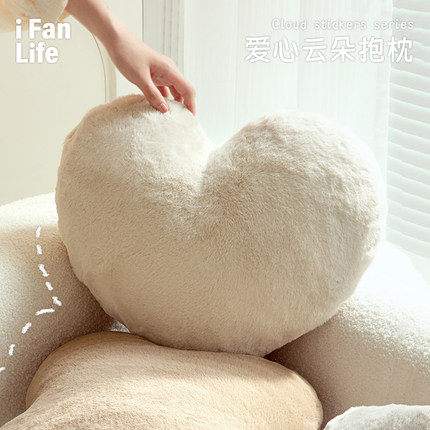 奥菲莉亚毛绒爱心形抱枕客厅沙发轻奢车载卧室床头靠枕腰枕可拆洗