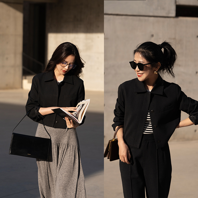 大象和长颈鹿 知识分子套装 短款黑色短外套+小脚西装裤 403305