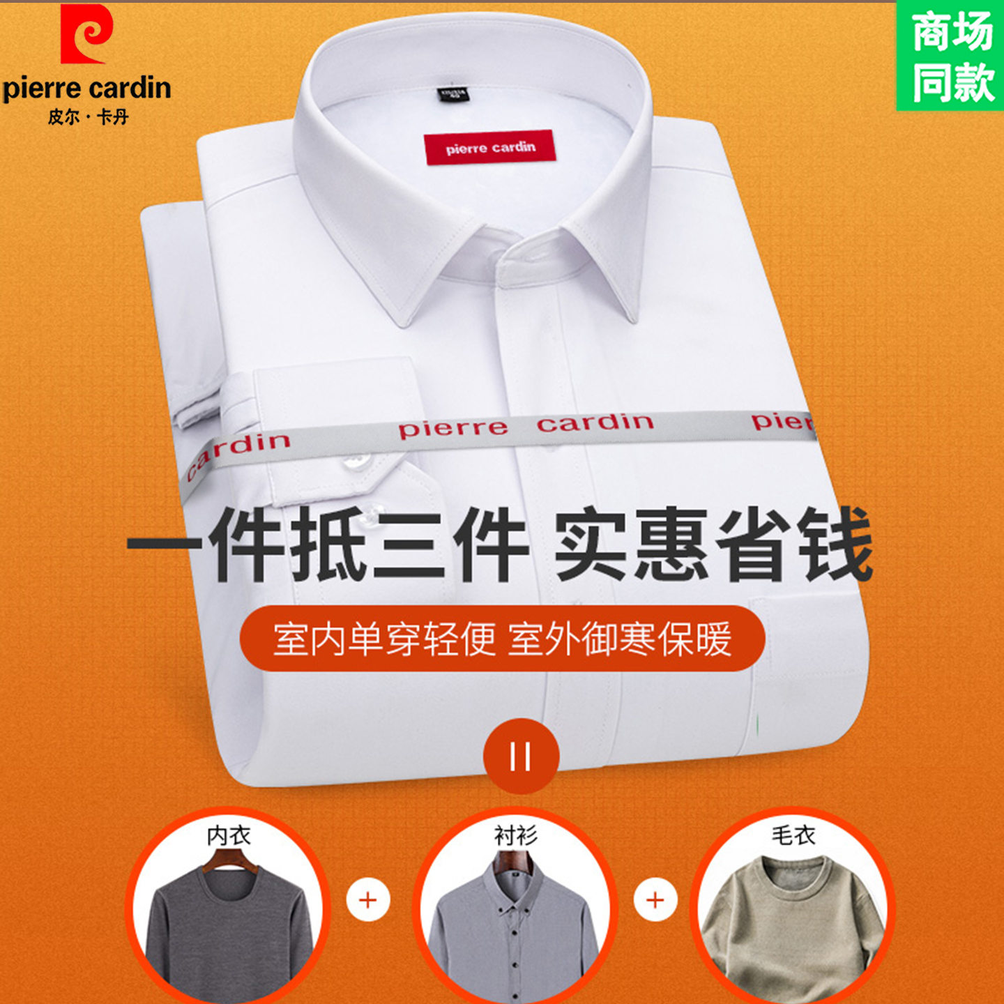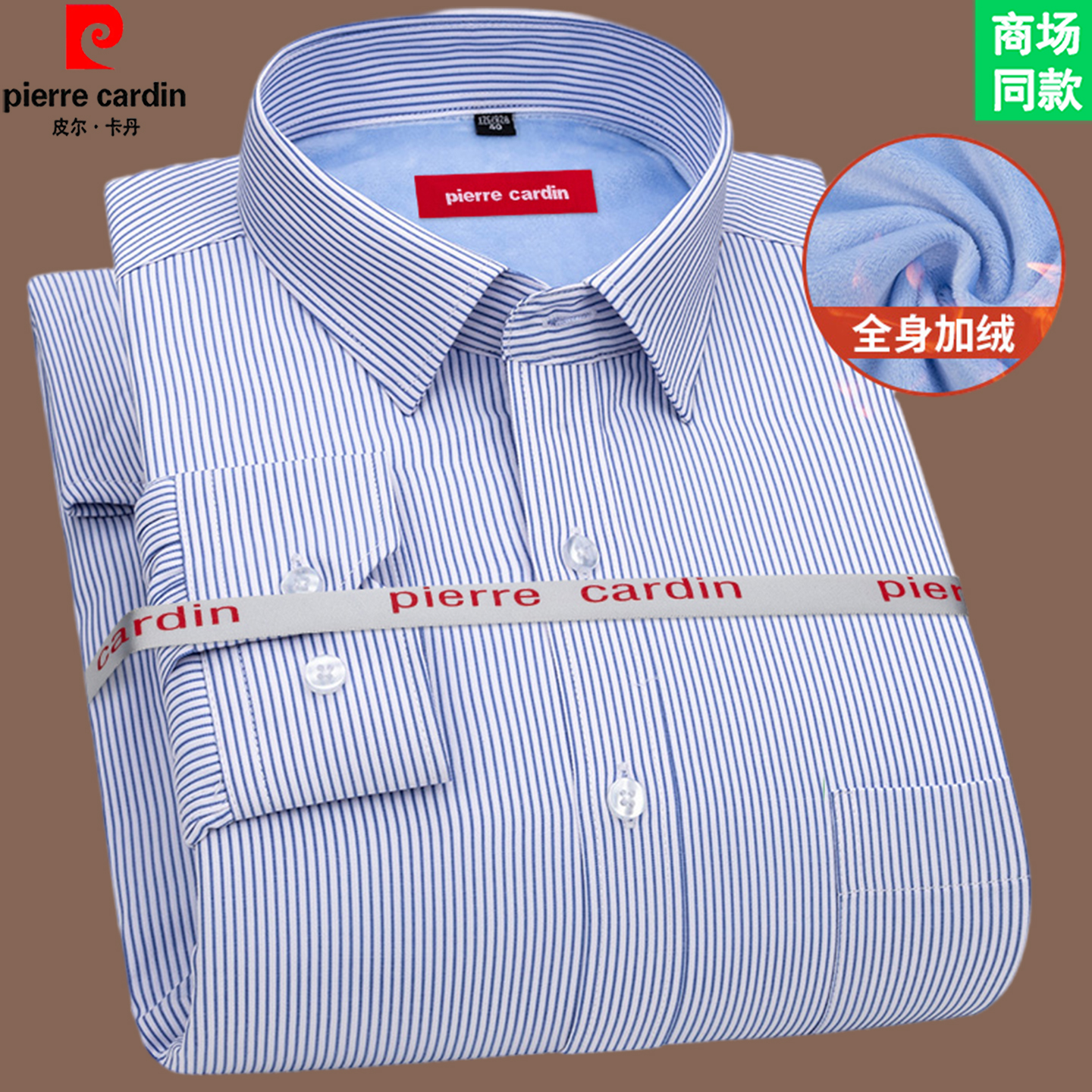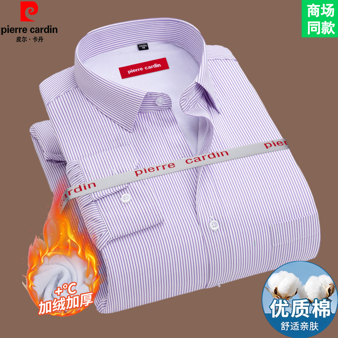 皮尔卡丹高端长袖白衬衫男抗皱免烫商务休闲寸衫正装加绒加厚衬衣