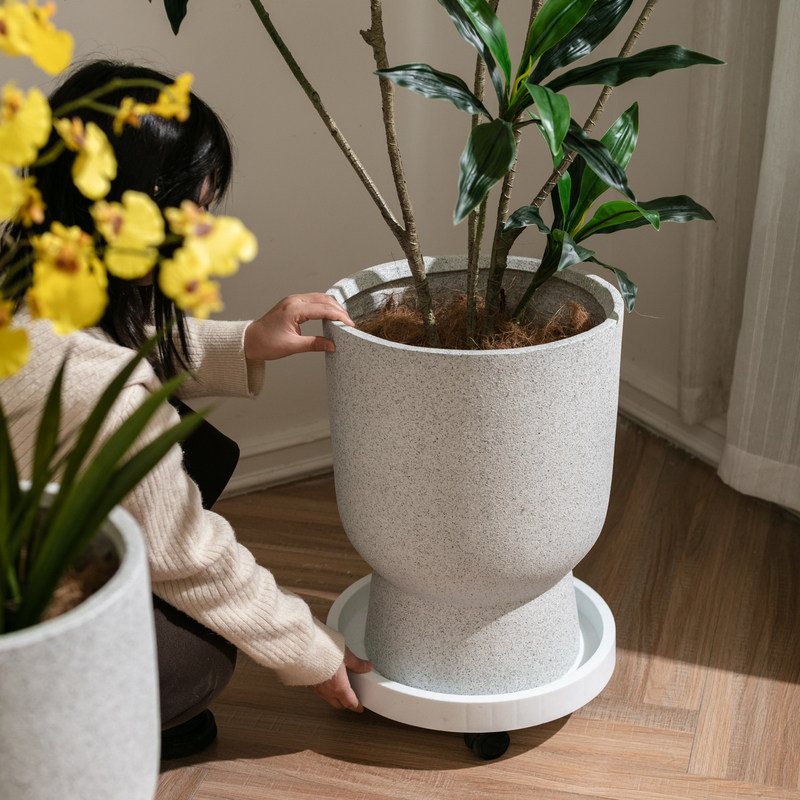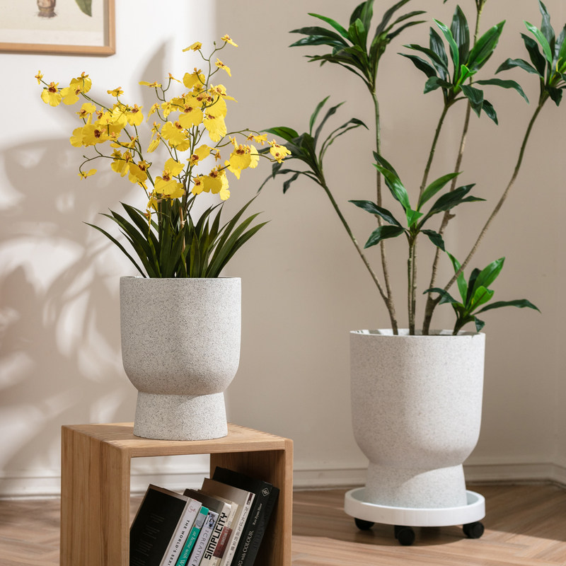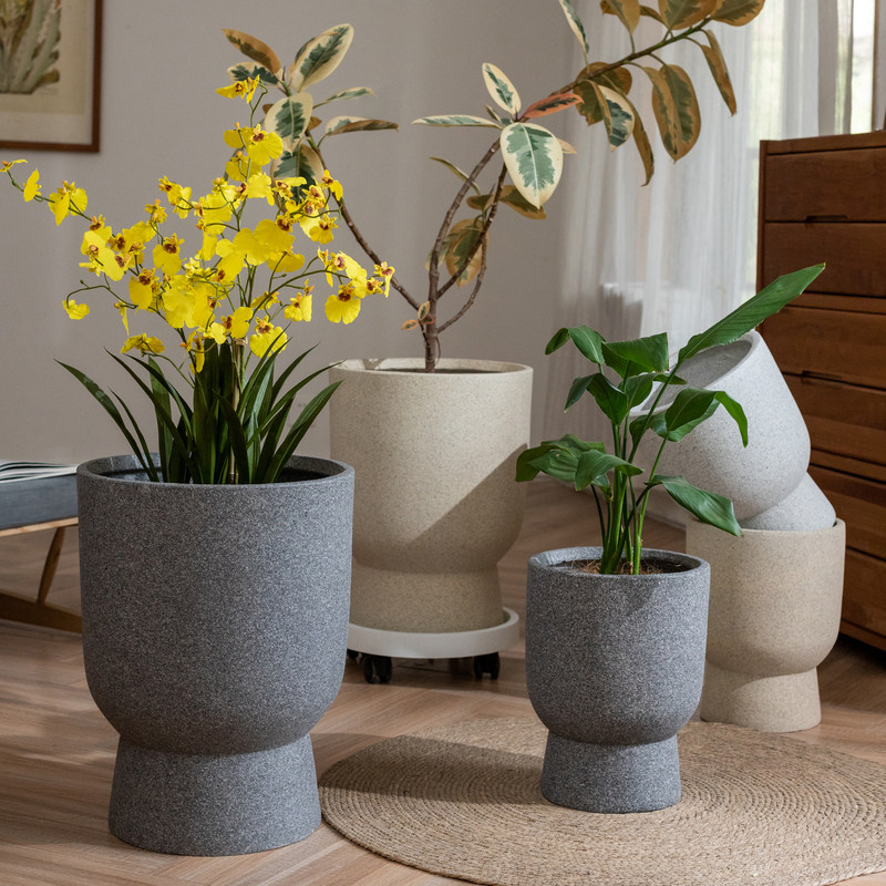 北欧镁泥高脚杯花盆发财树绿植花器特大号简约ins客厅落地水泥盆