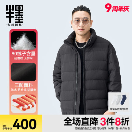 半墨大码轻薄羽绒服男短款宽松胖子加肥加大立领保暖羽绒外套冬季