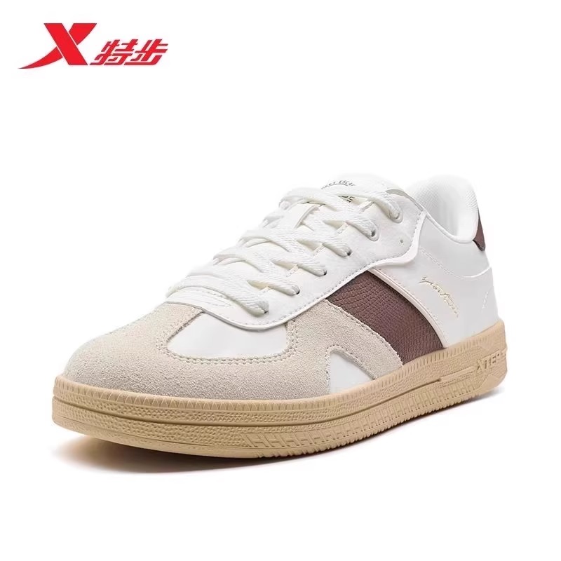 特步男鞋板鞋德训鞋2025夏季新款运动鞋男士皮面休闲975219310026