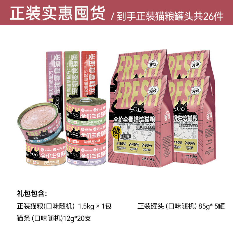 宠叹猫零食罐头全价烘焙猫粮主食金枪鱼营养猫条幼猫26件大礼包