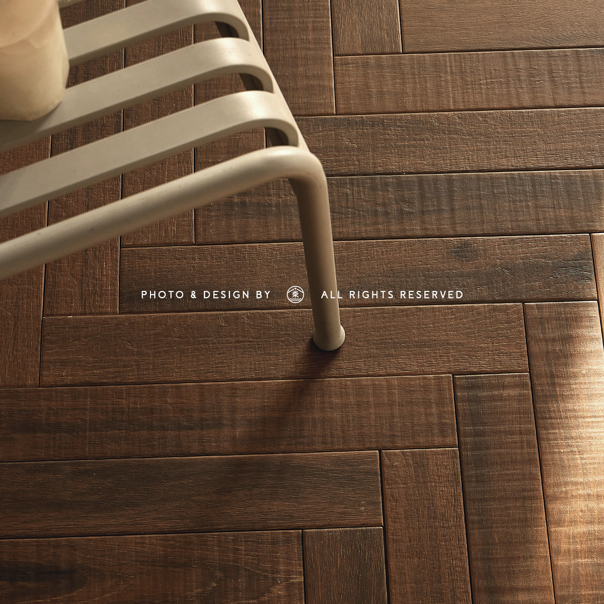 小火柴法式人字拼木纹砖仿木地板瓷砖中古客厅卧室全屋小细条地砖