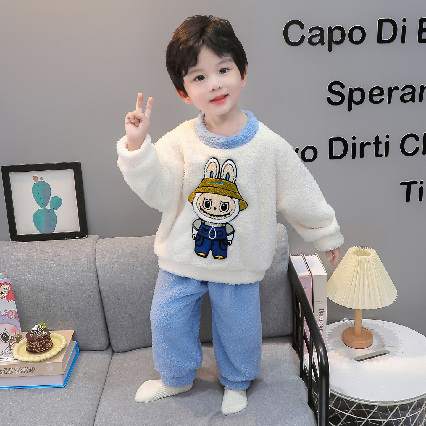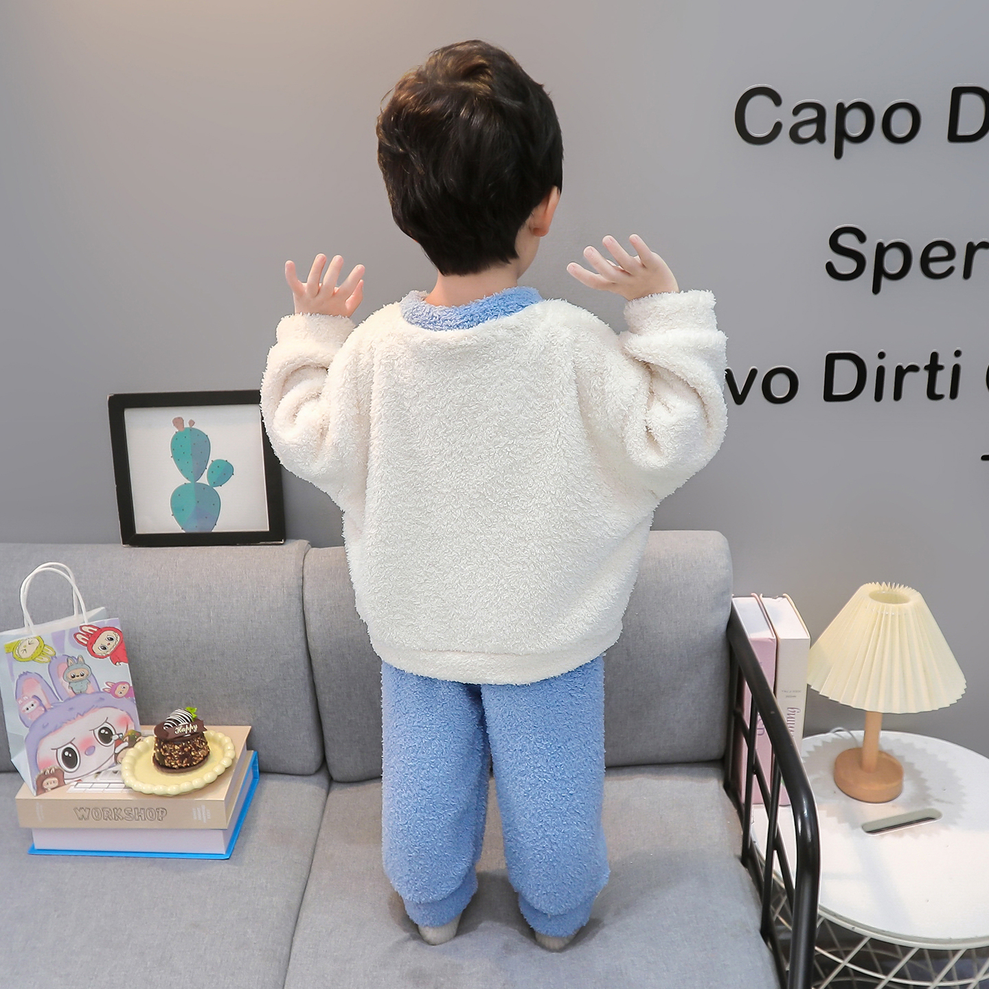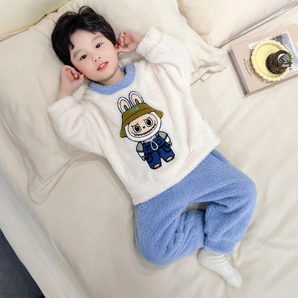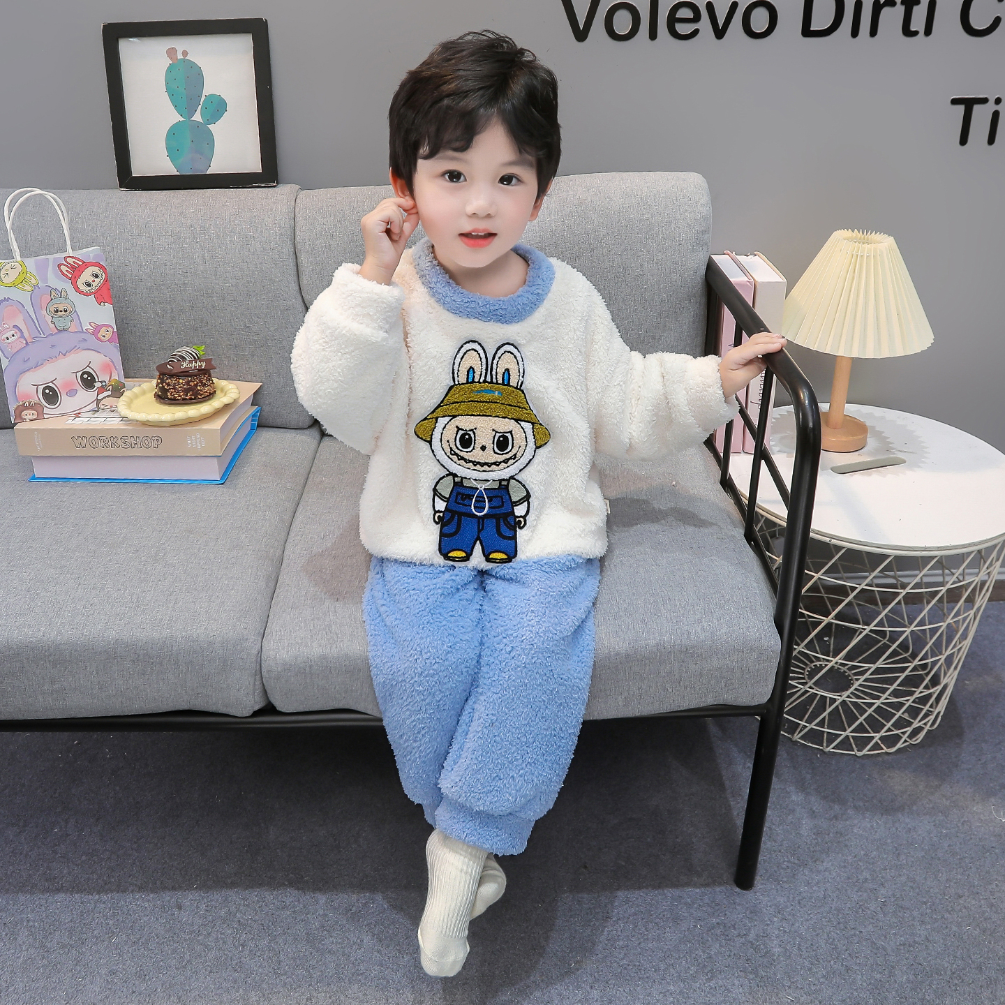 儿童睡衣秋冬季2025新套装法兰绒男童珊瑚绒加厚卡通拉布布家居服