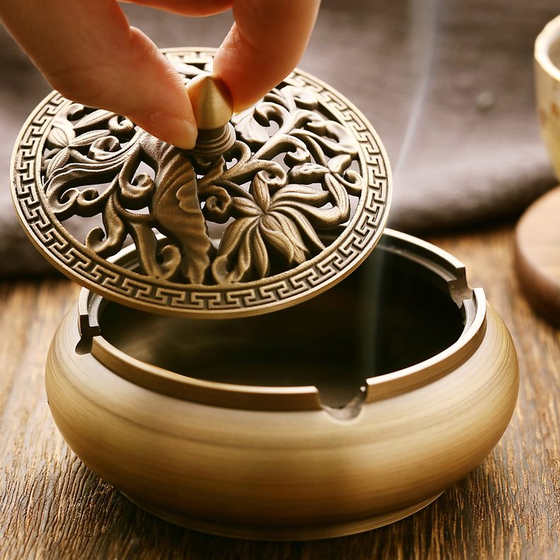 飞个性潮流办公室中式铜烟灰缸家用客厅装饰防带盖灰室内烟灰缸