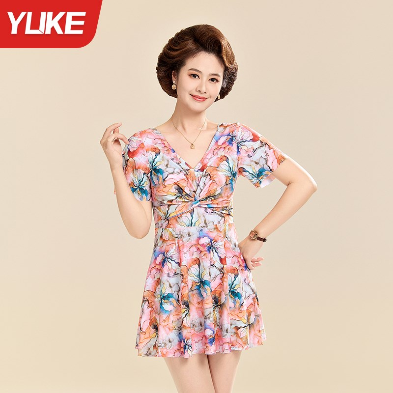 妈妈泳衣女保守连体遮肚显瘦中老年泡温泉2025年新款大码游泳装备