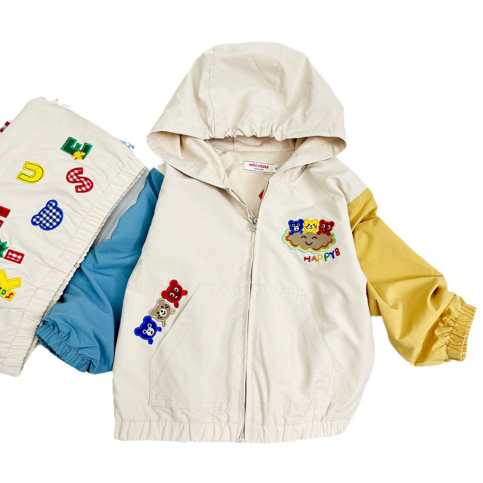 日系中小童开衫外套miki春秋季男女童卡通小熊风衣装连帽上衣褂子