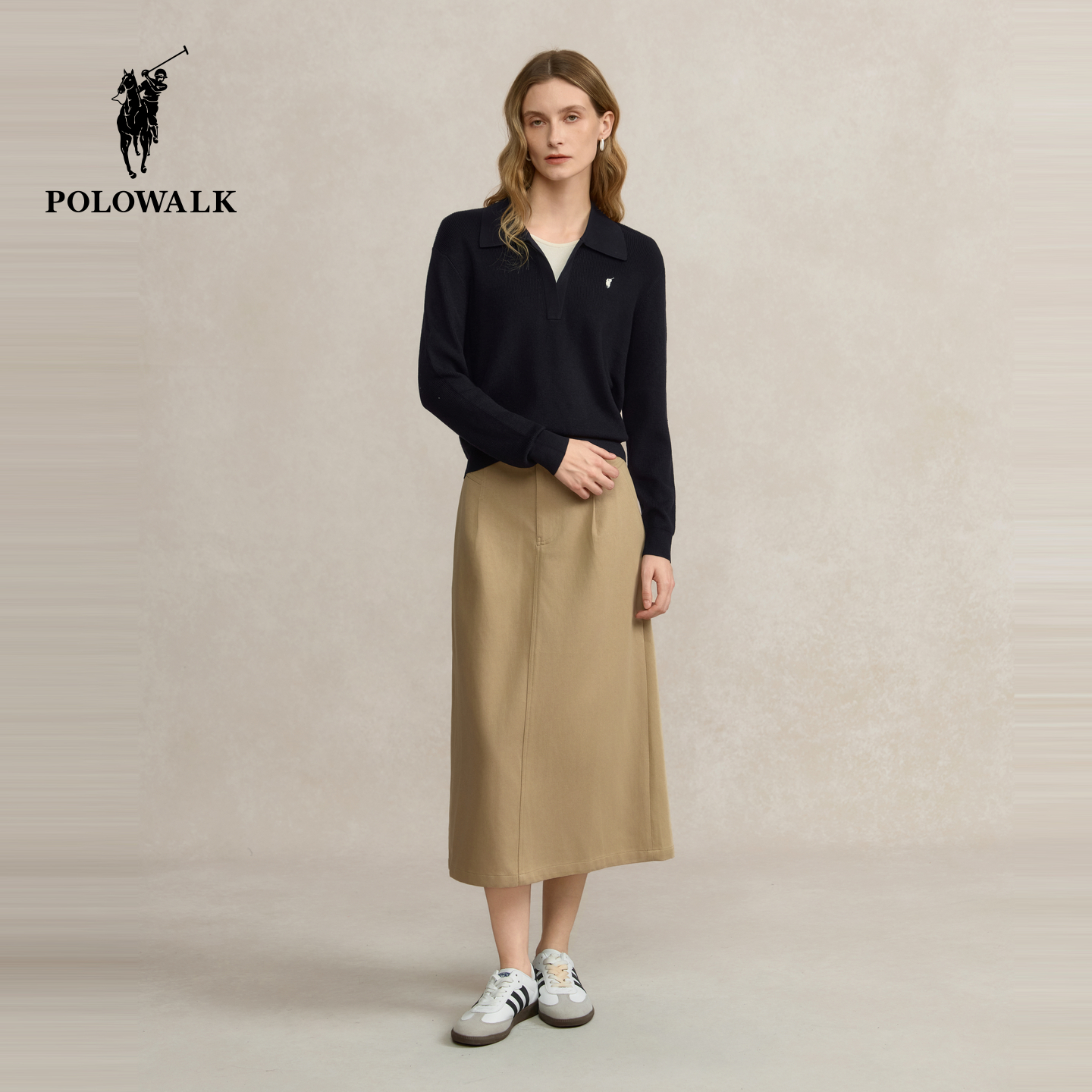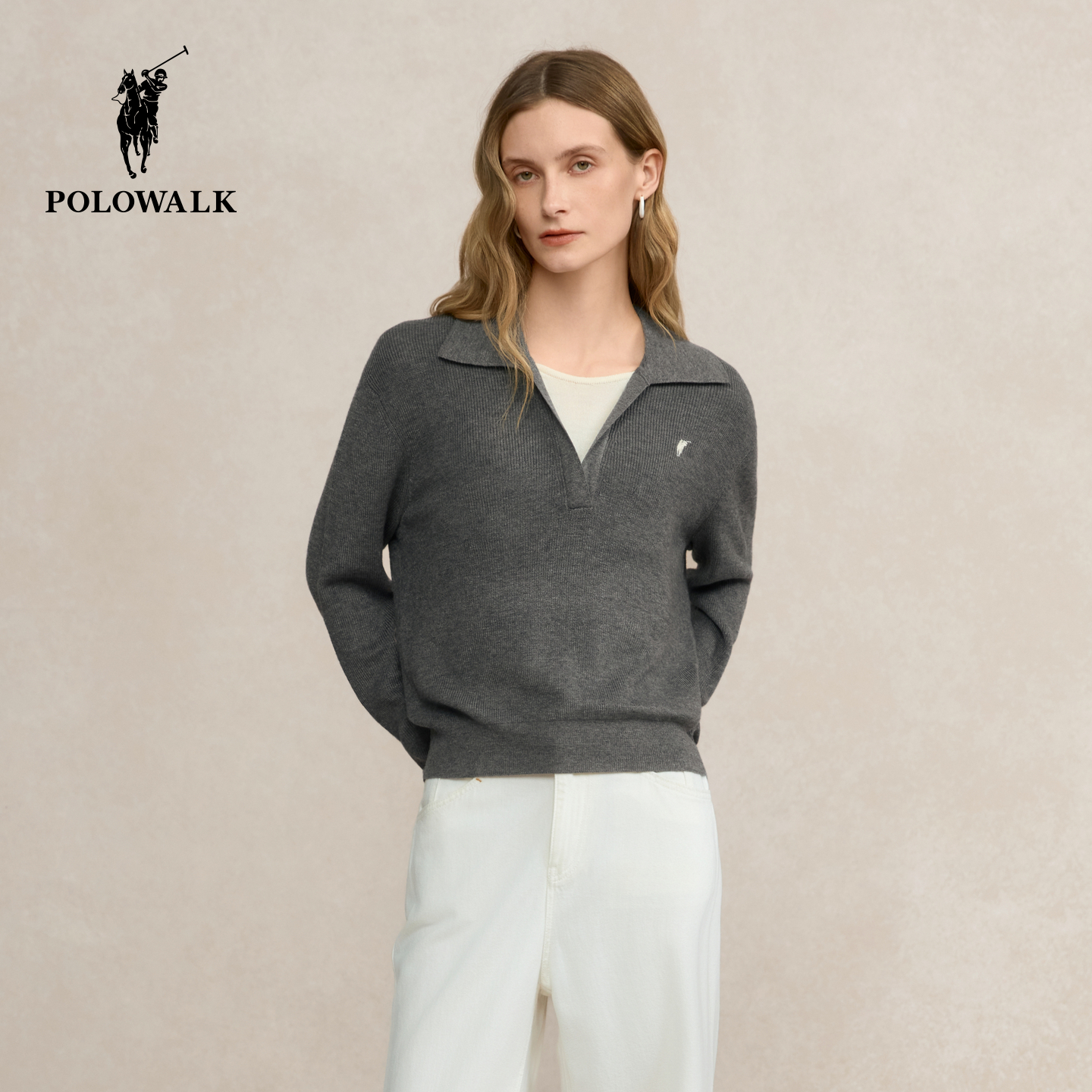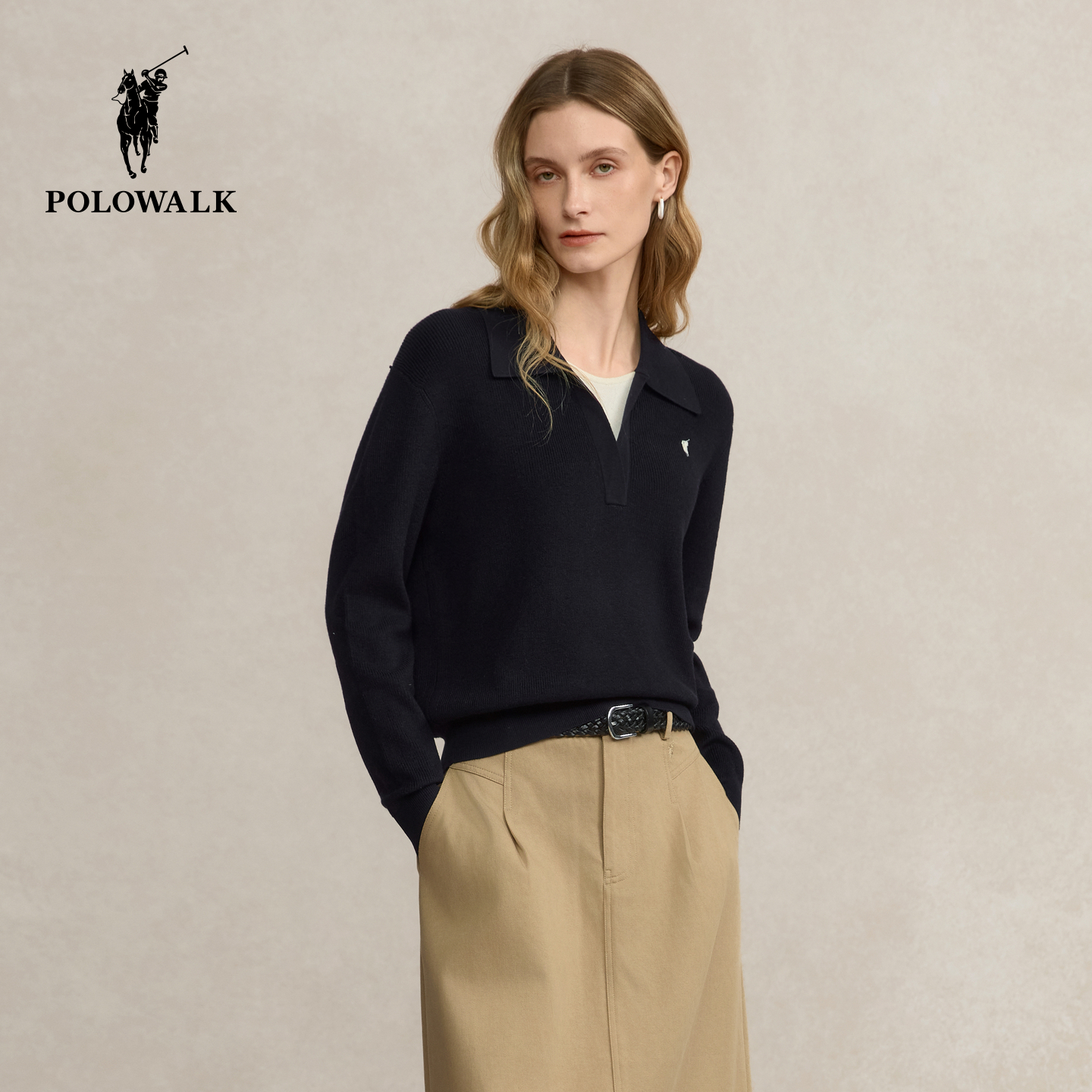 POLOWALK女装2025秋冬新款女士长袖针织衫翻领宽松毛衣秋装上衣