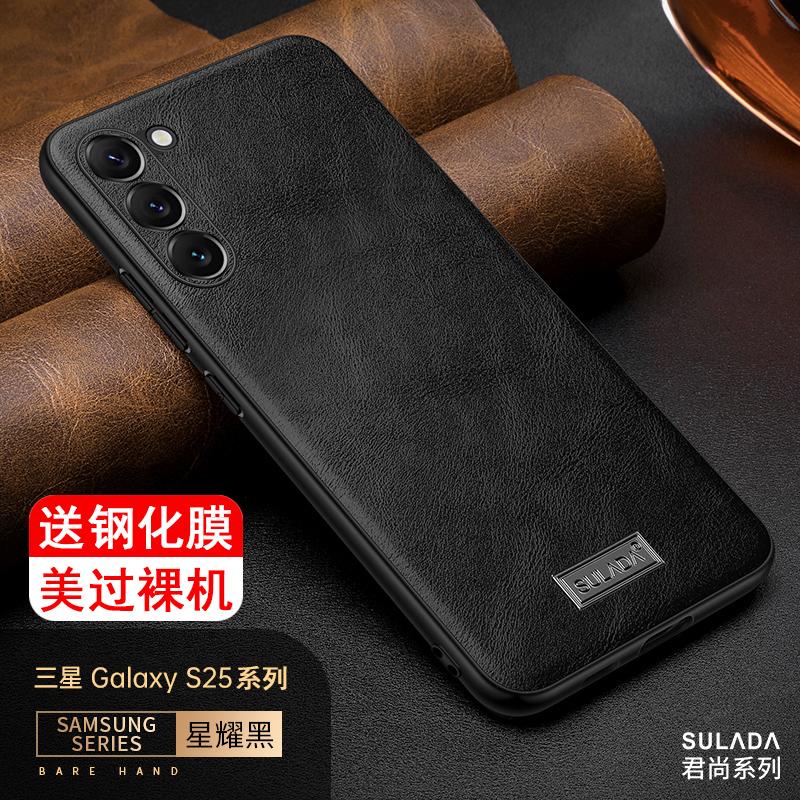 适用三星S25手机壳新款轻奢皮壳油蜡纹S25Ultra真皮全包壳S24+软边防摔商务壳至尊S23高档男女款S22保护套