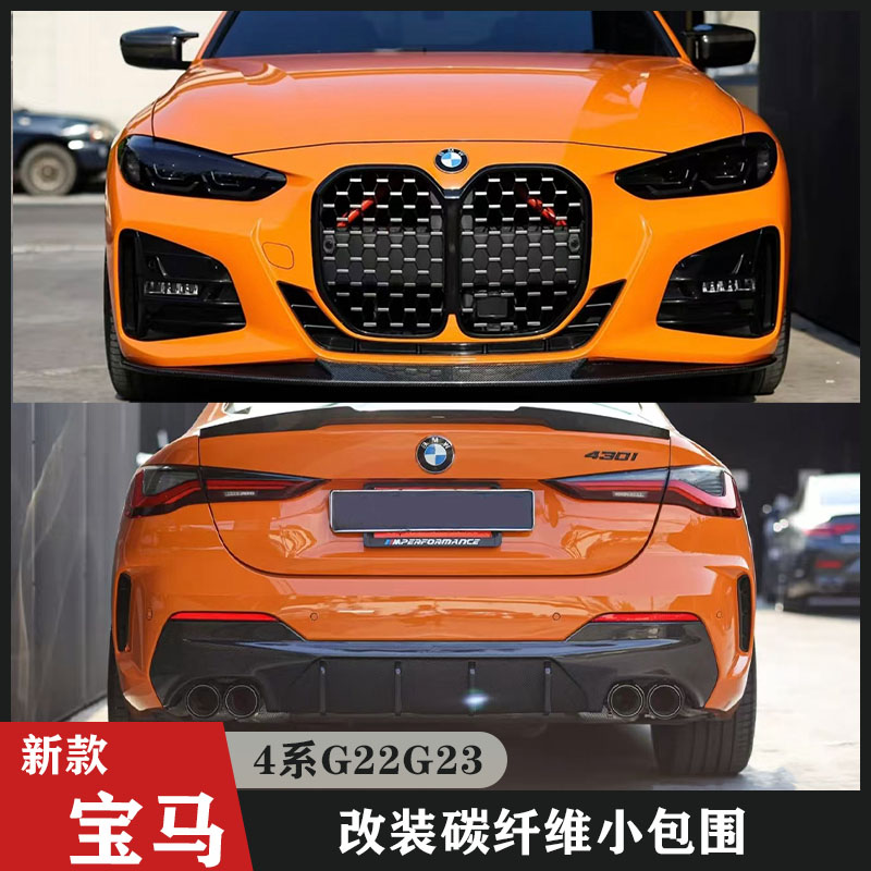 适用于宝马4系G22G23双门版改装碳纤维FD前唇侧裙后唇 尾翼 中网