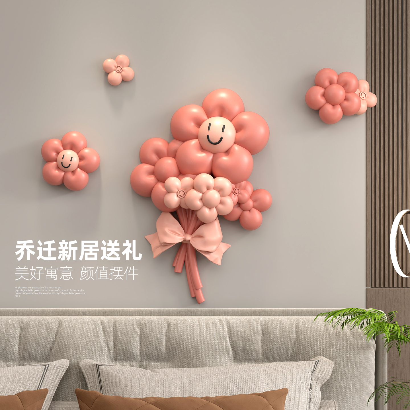 多巴胺有钱花3D立体浮雕壁饰客厅儿童房入户玄关电视背景墙上挂饰