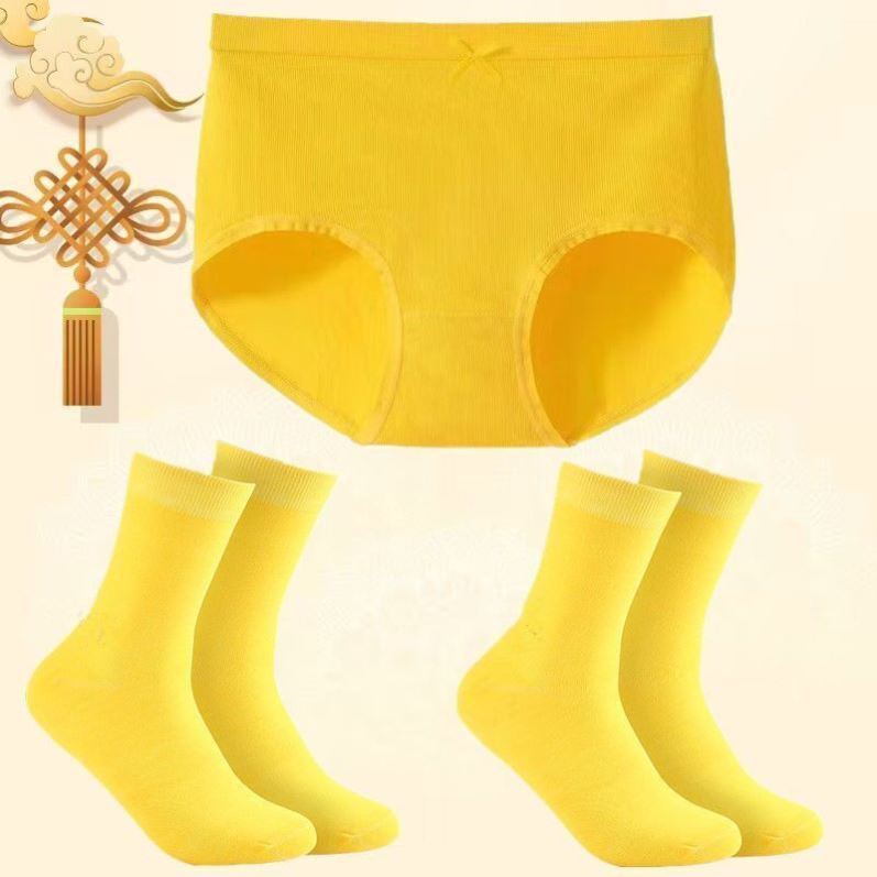 属马本命年黄色内裤女士纯棉中老年妈妈款中高腰黄色内裤袜子套装