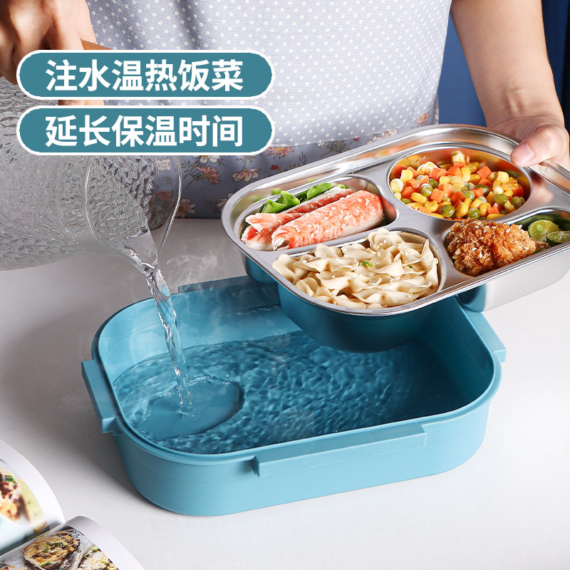 304不锈钢饭盒中小学生食堂手提便携分格便当盒上班保温分隔餐盒