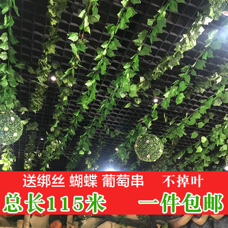 仿真葡萄叶假花藤条藤蔓植物树叶绿叶水管道吊顶装饰塑料绿萝叶子
