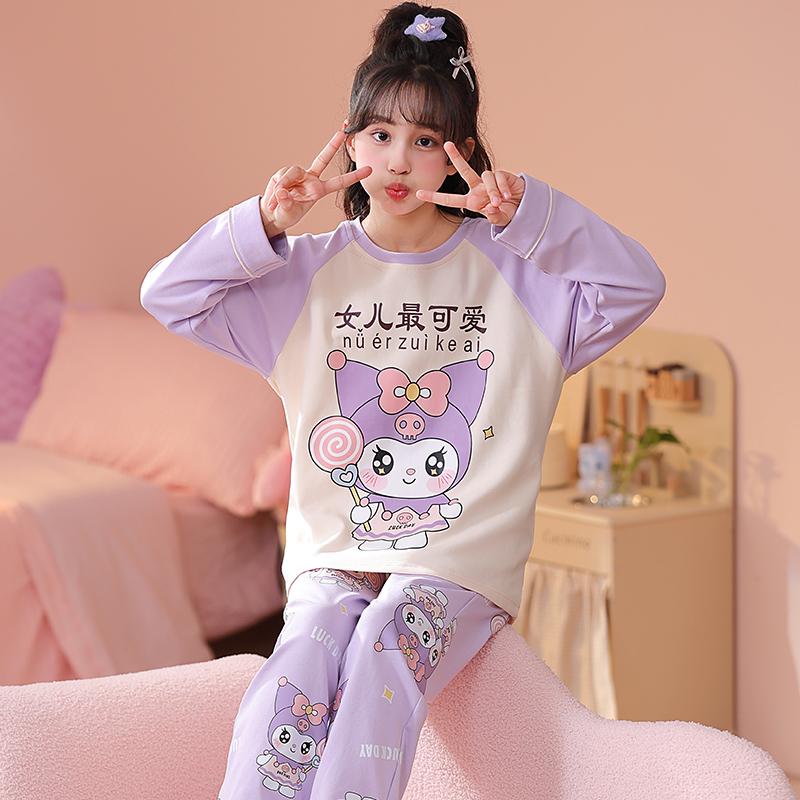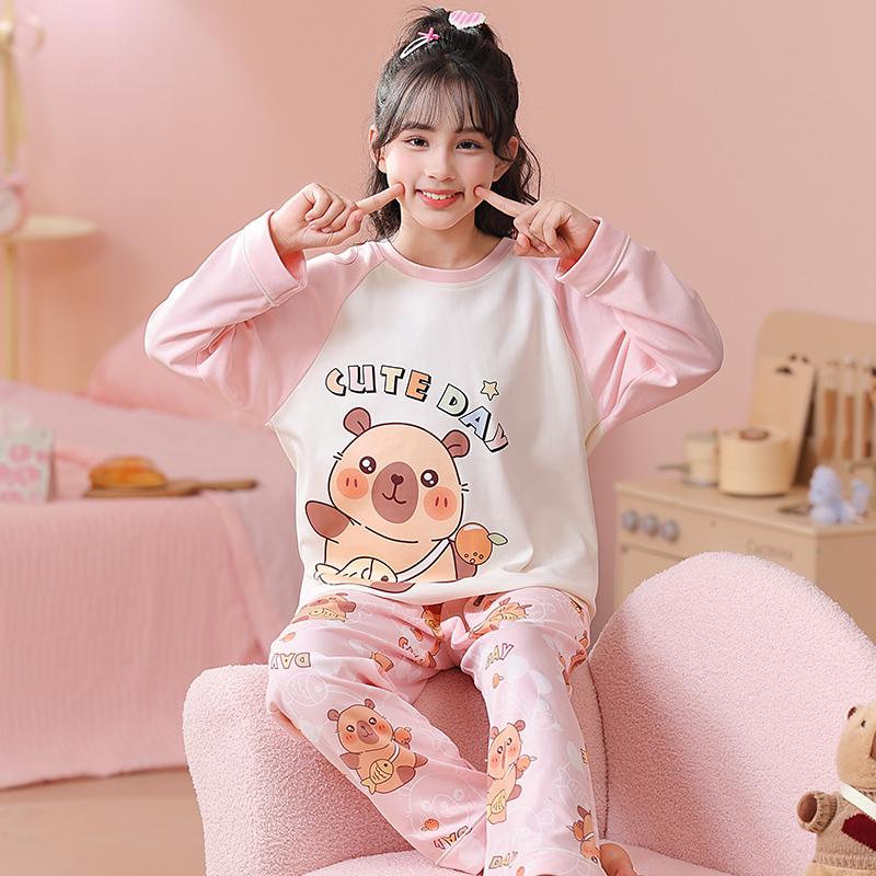 新款儿童长袖睡衣纯棉女孩家居服