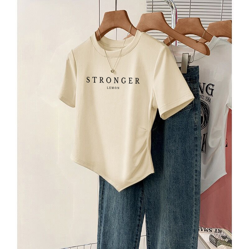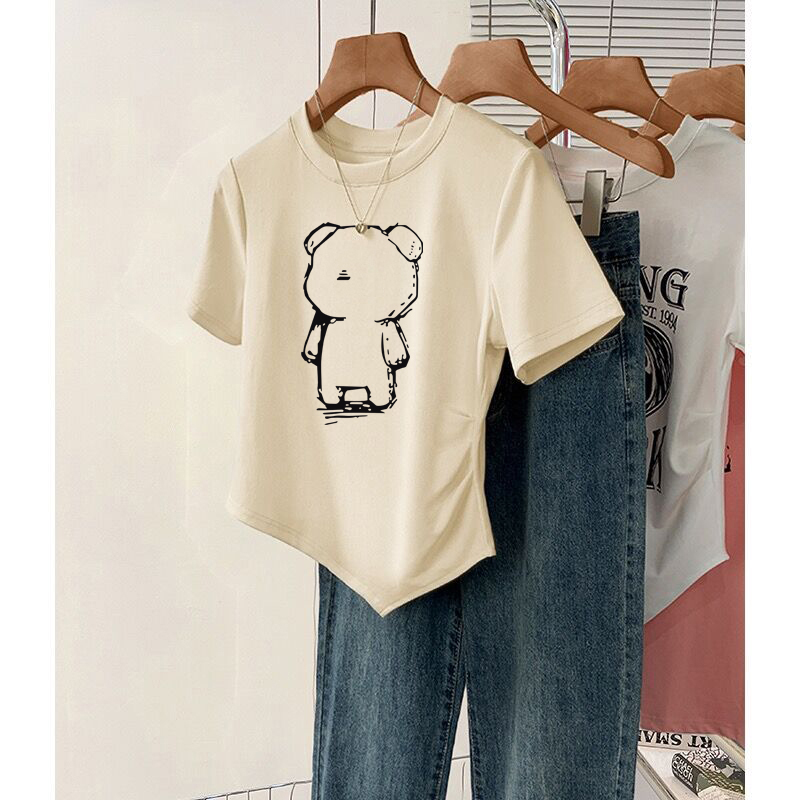 不规则短款纯棉正肩短袖T恤女2024年新款设计感小众粉色上衣体恤