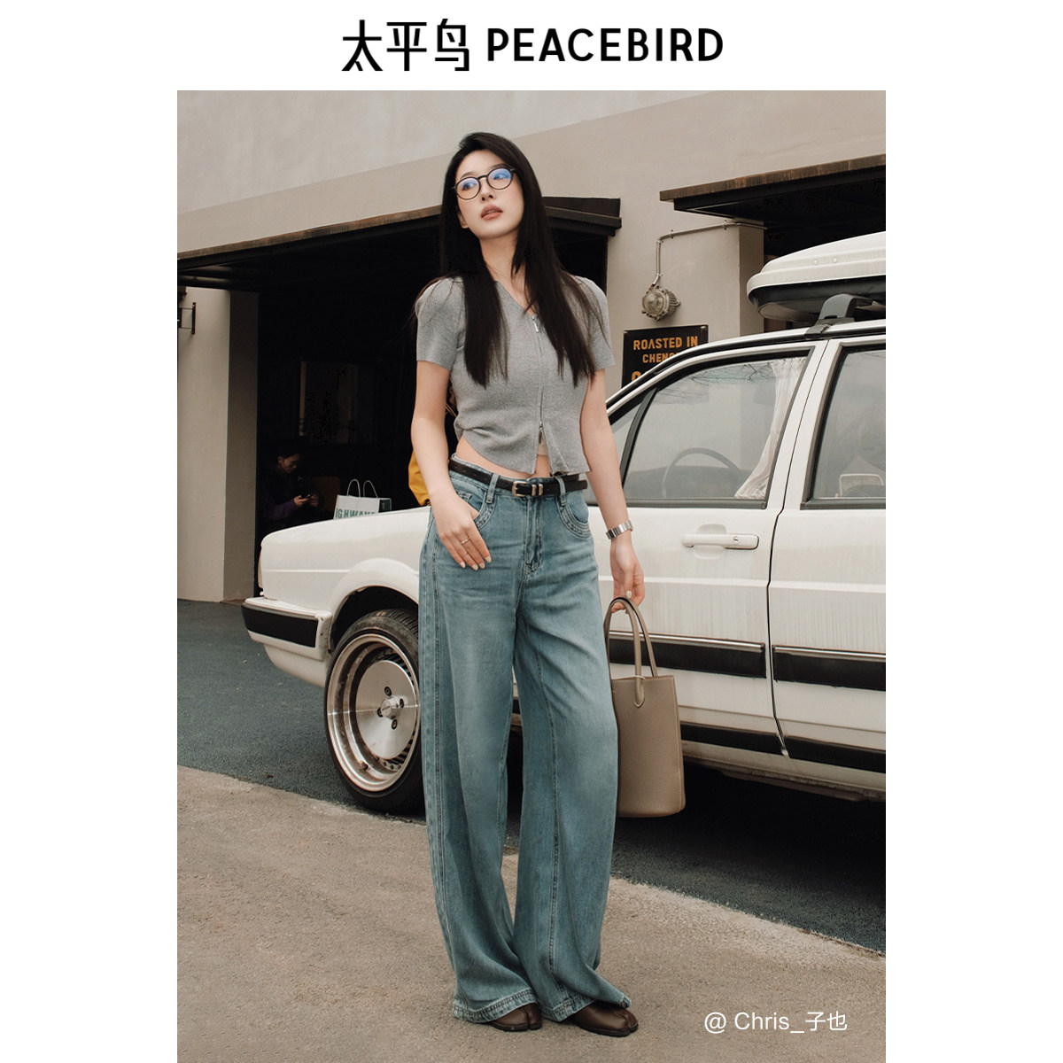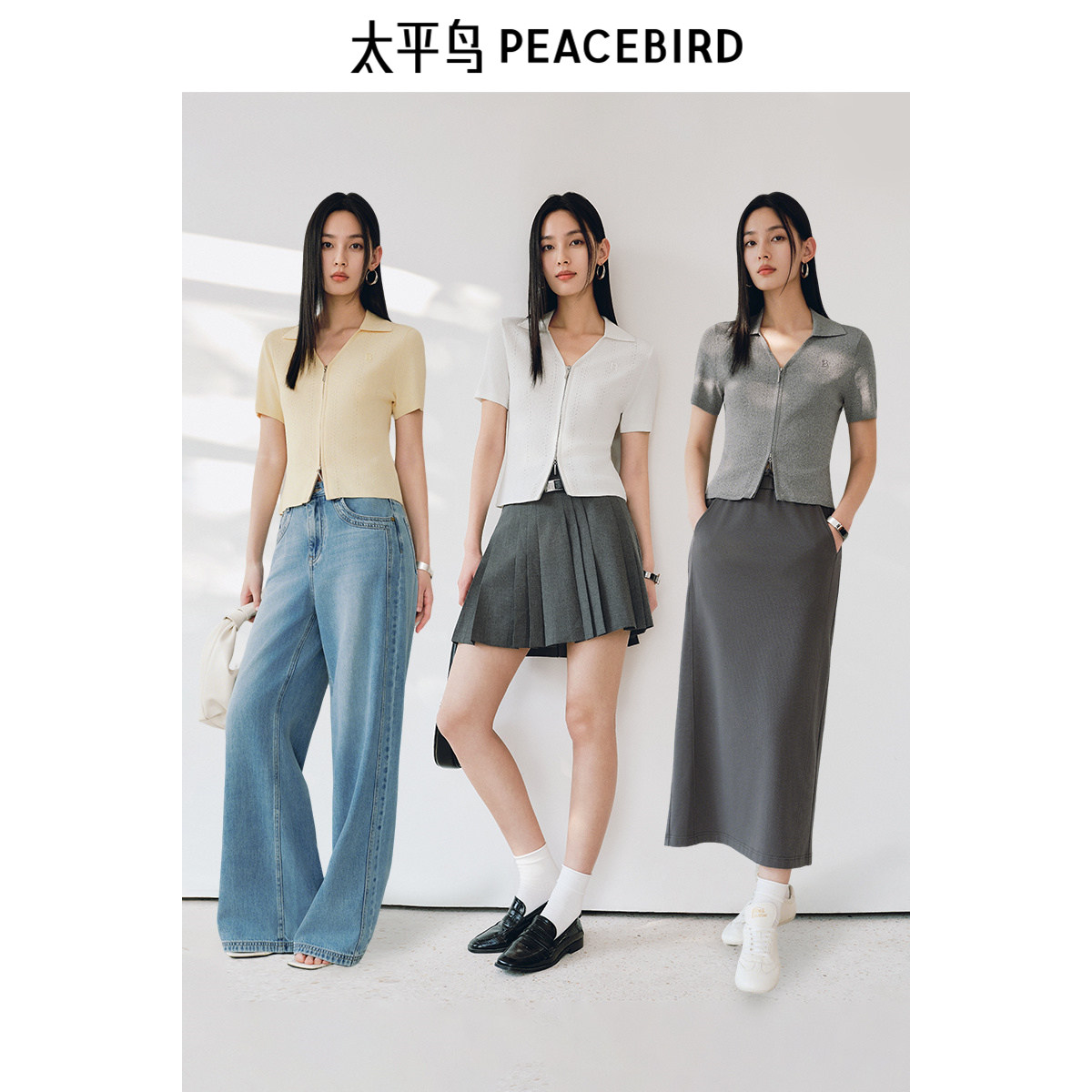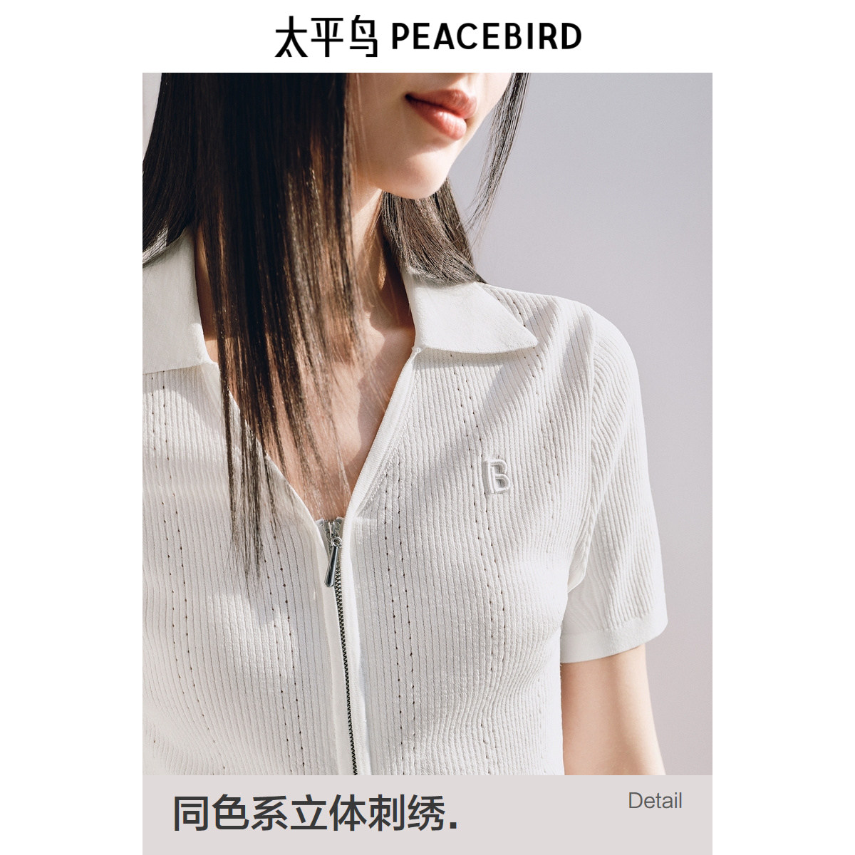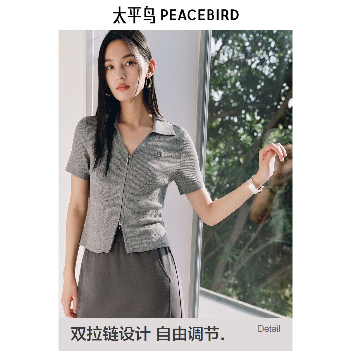 太平鸟 曲珠纱翻领短袖针织衫女士2025夏装新款透气开衫上衣多色