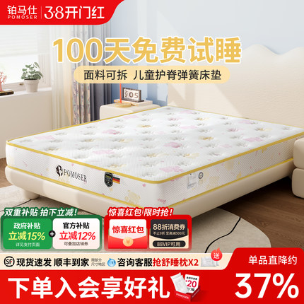 铂马仕童梦儿童护脊弹簧床垫1.5米席梦思乳胶床垫软垫椰棕黄麻硬