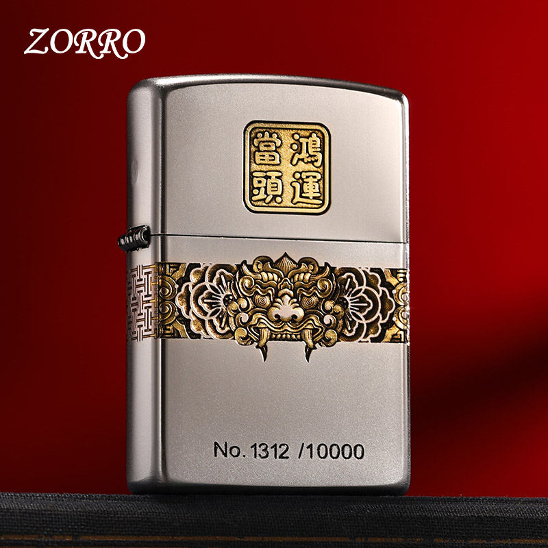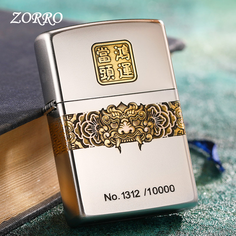 ZORRO佐罗打火机正品鸿运当头防风煤油男士高档礼物男友定制刻字