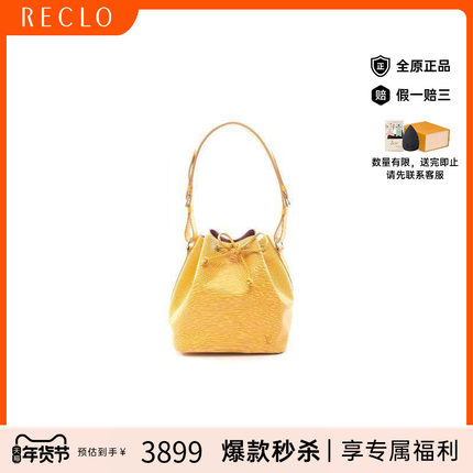 中古LV路易威登女包B级9新Petit Noe水桶包牛皮单肩包黄色