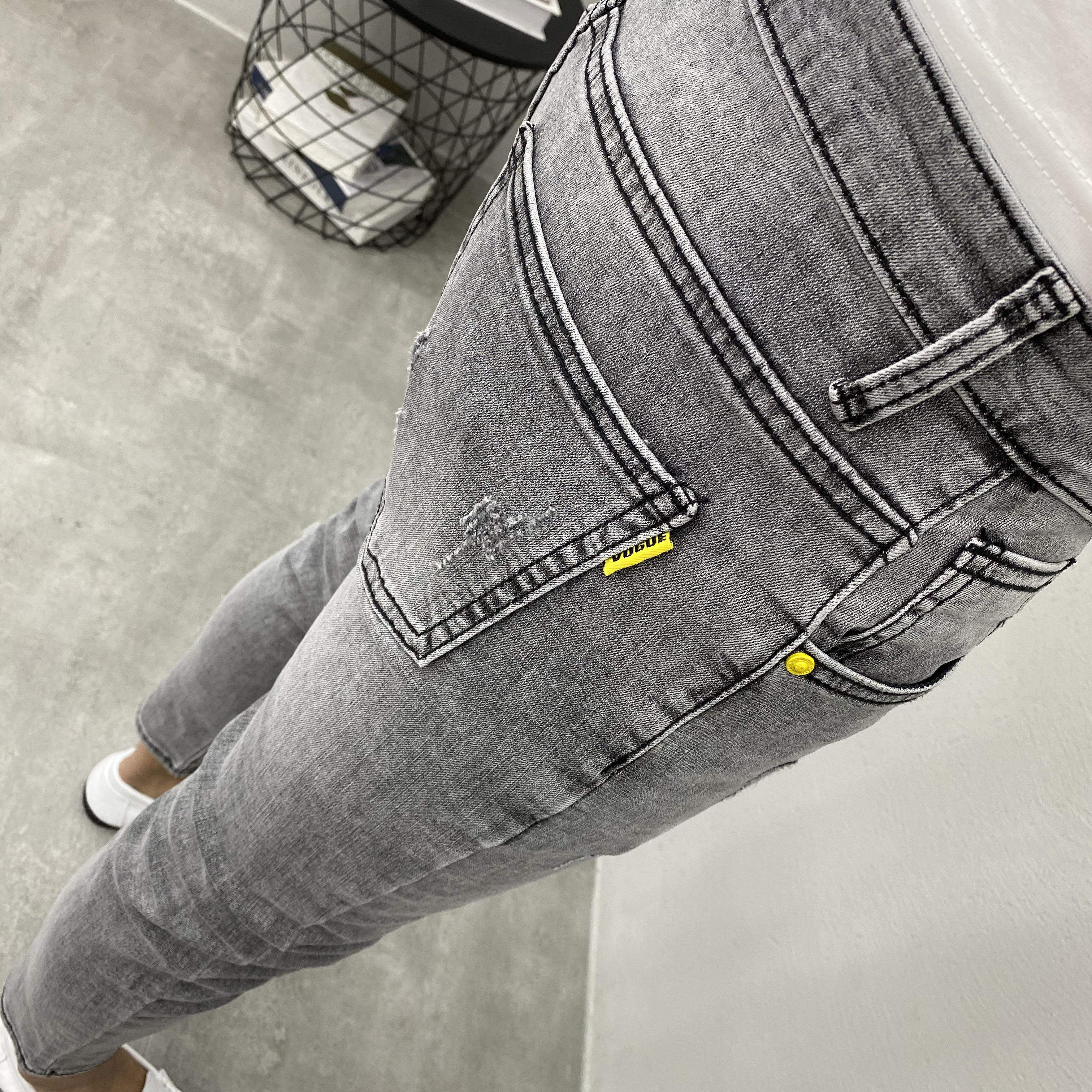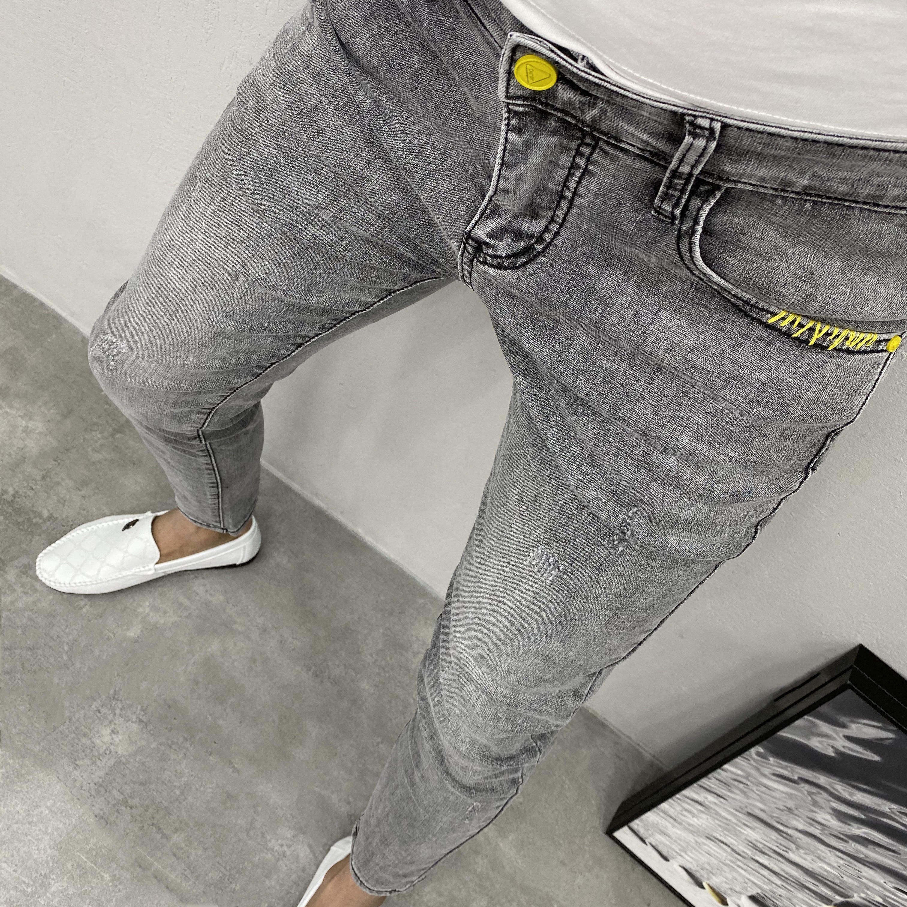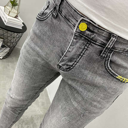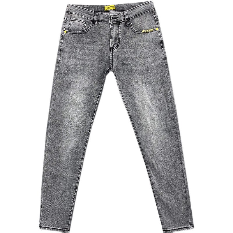 网红烟灰刺绣九分社会小伙牛仔裤