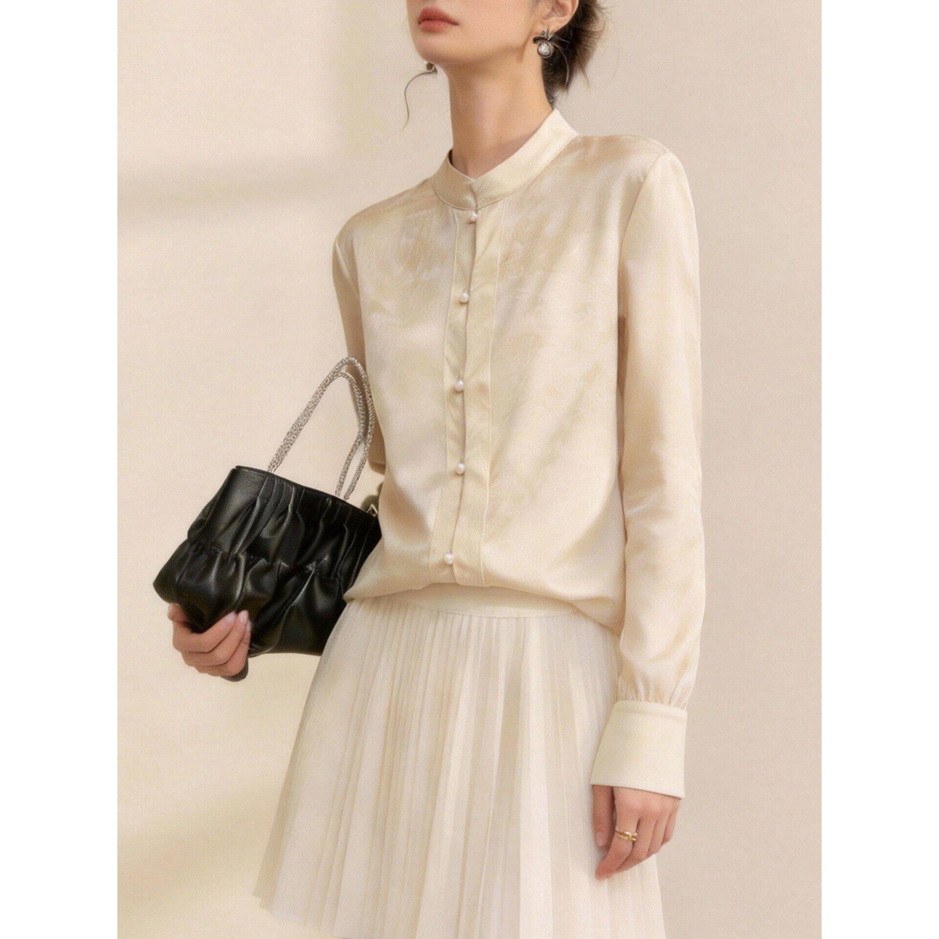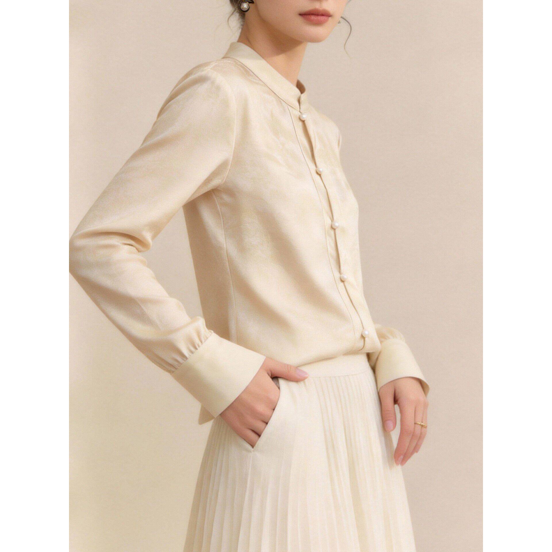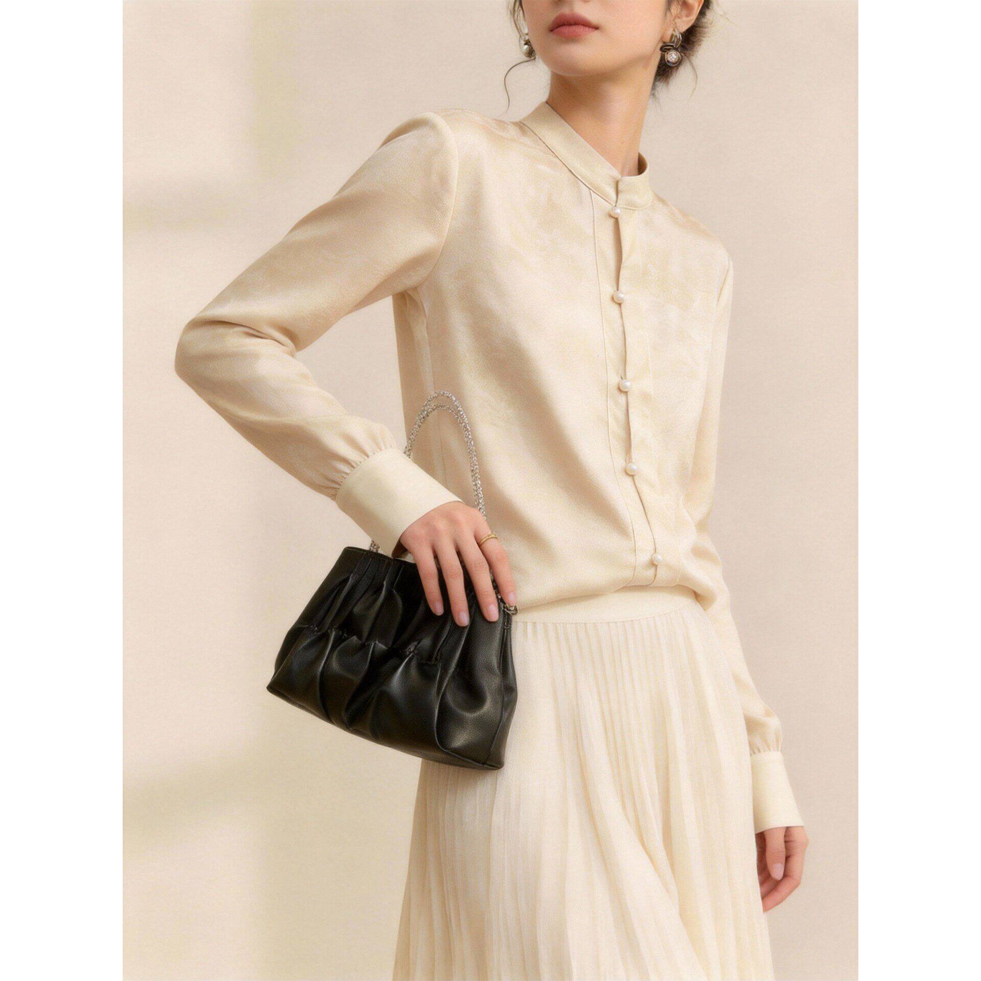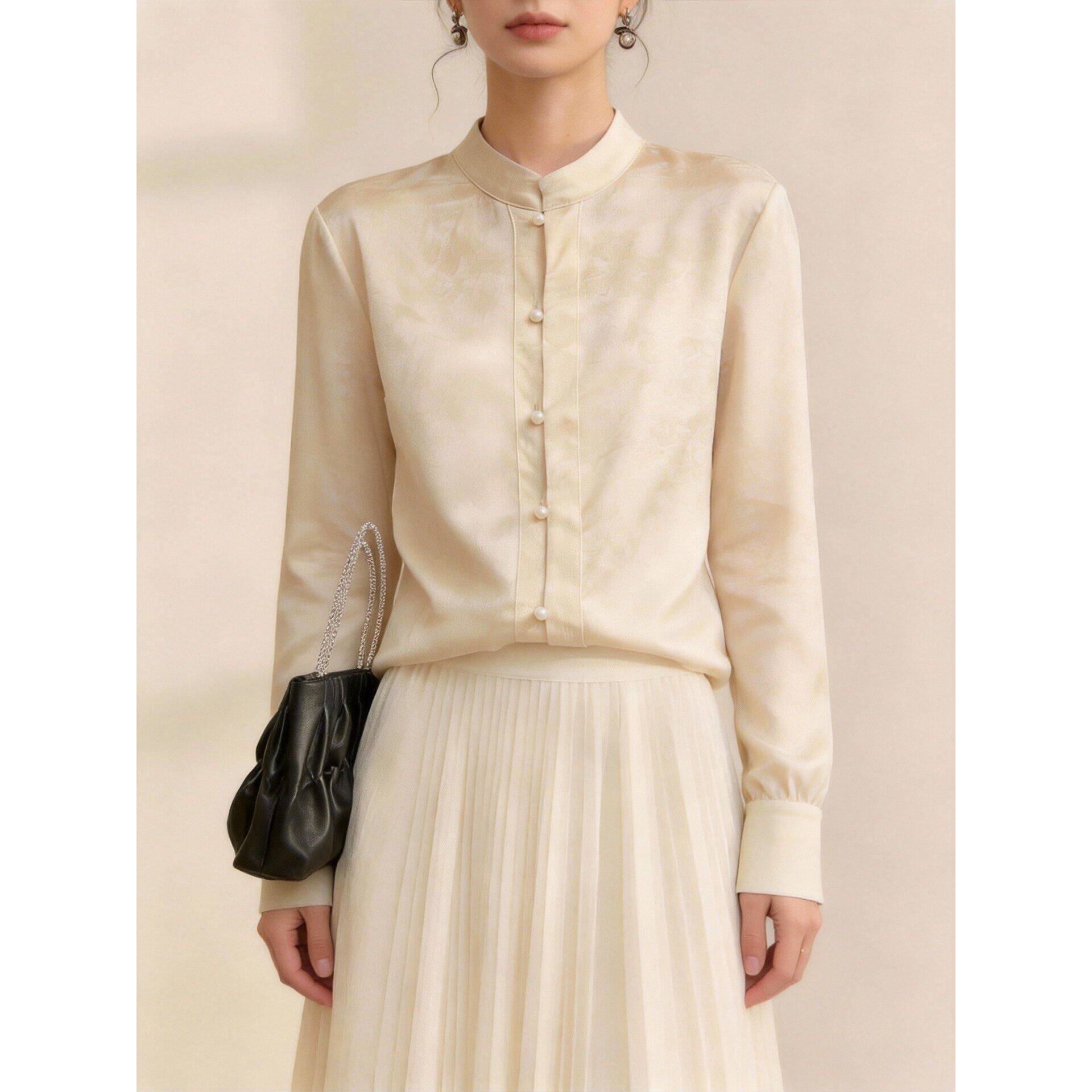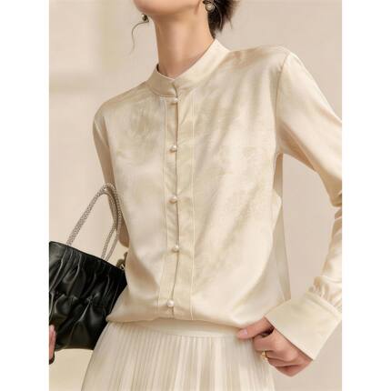 新中式立领缎面提花女衬衫高级感