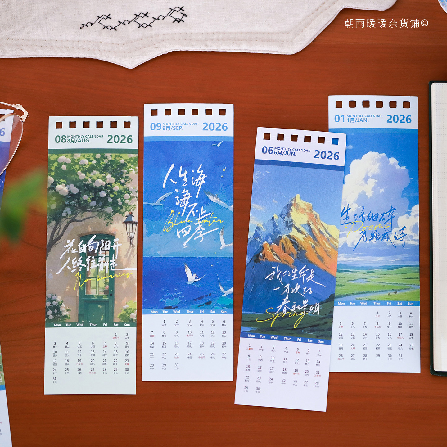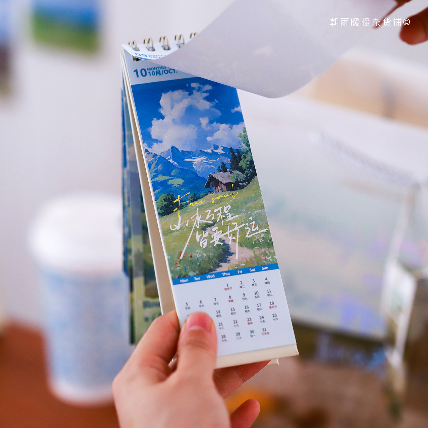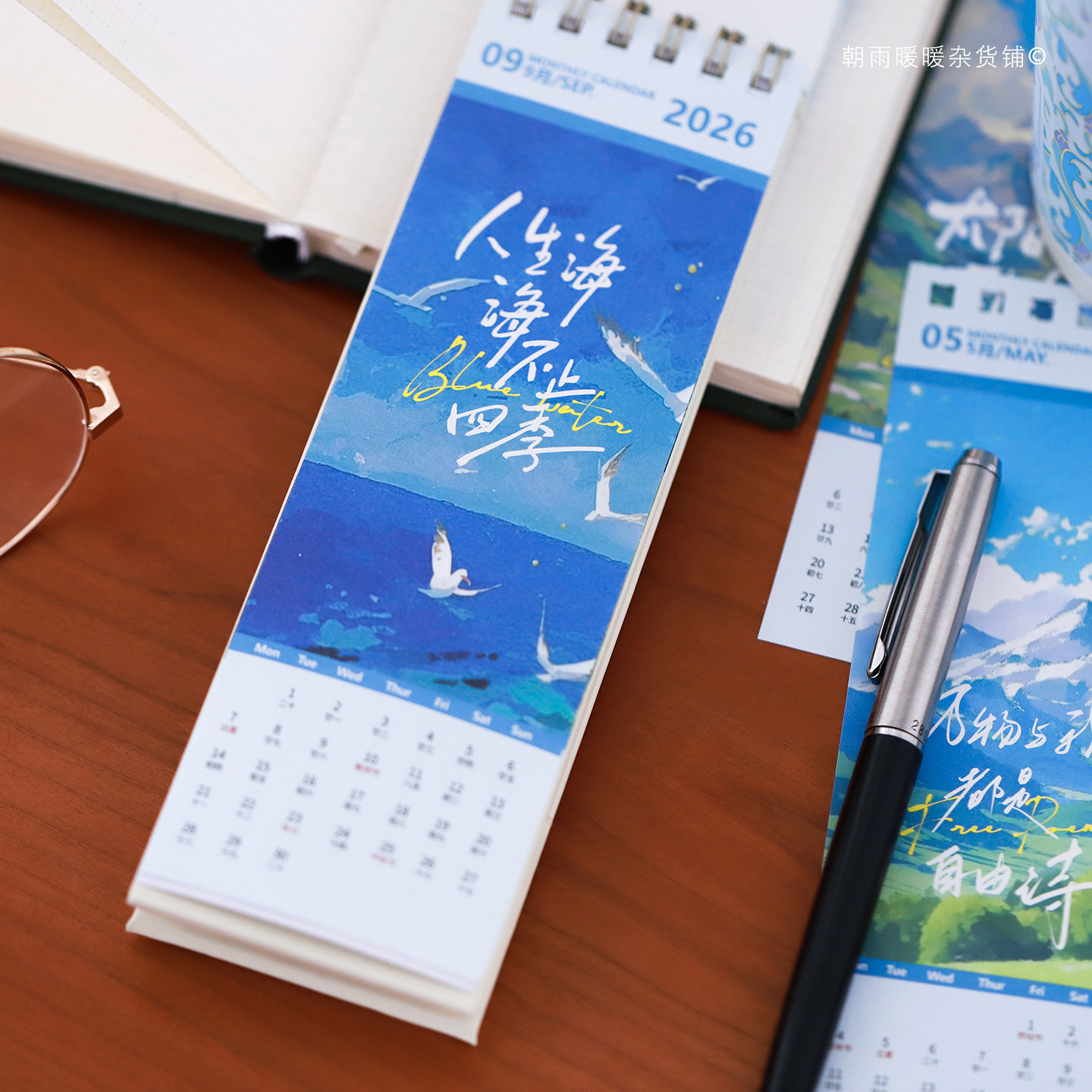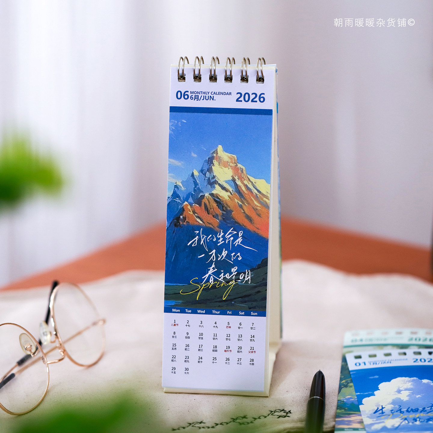 漫游乌托邦日历2026年新款高颜值治愈手绘风景翻页台历桌面月历