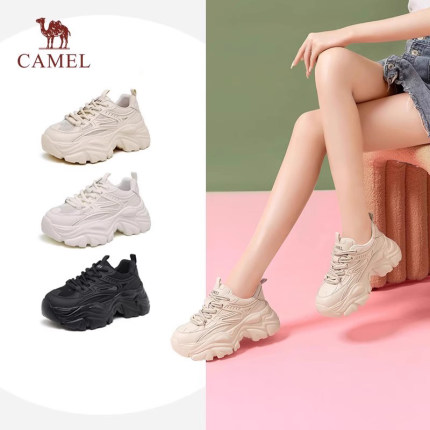 骆驼女鞋2025秋冬新款复古厚底增高老爹鞋轻便高帮休闲运动鞋