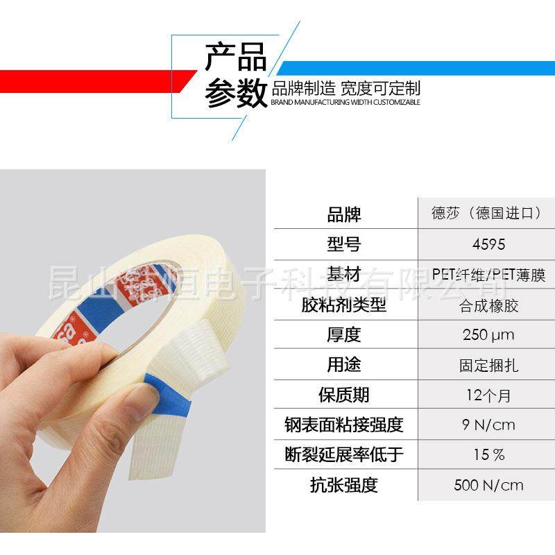 德莎4595tesa纤维胶带双向拉伸高粘耐磨重物捆扎管道电缆缠绕固定