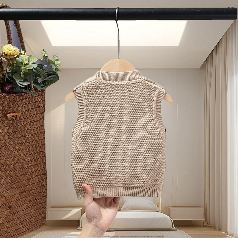 儿童针织马甲男童女童春秋外穿V领开衫毛衣小童毛线纯色保暖背心