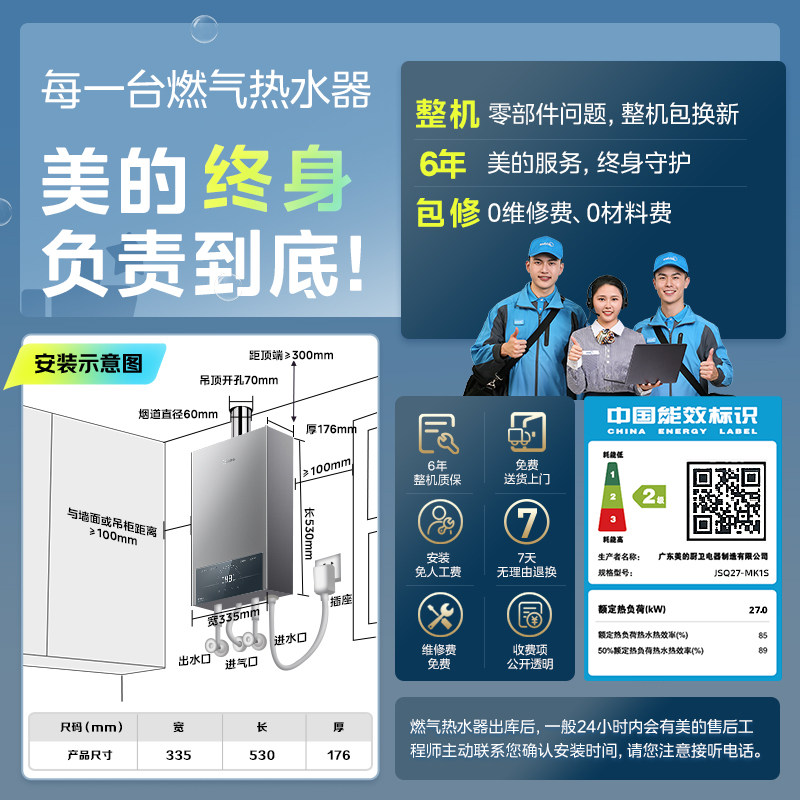 美的恒温燃气热水器家用洗澡14L16升天然气变频MK1S