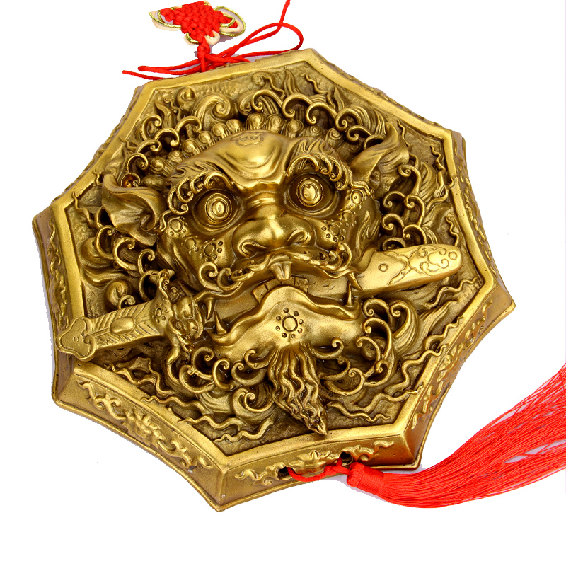 泰山阁 铜狮咬剑挂件八卦八角狮铜狮子头挂牌铜兽首门口挂饰