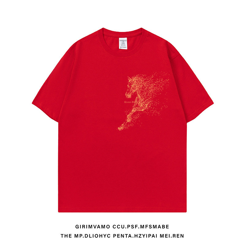 马年本命年酒红色短袖t恤男2026新款国潮宽松大码纯棉体恤衫半袖