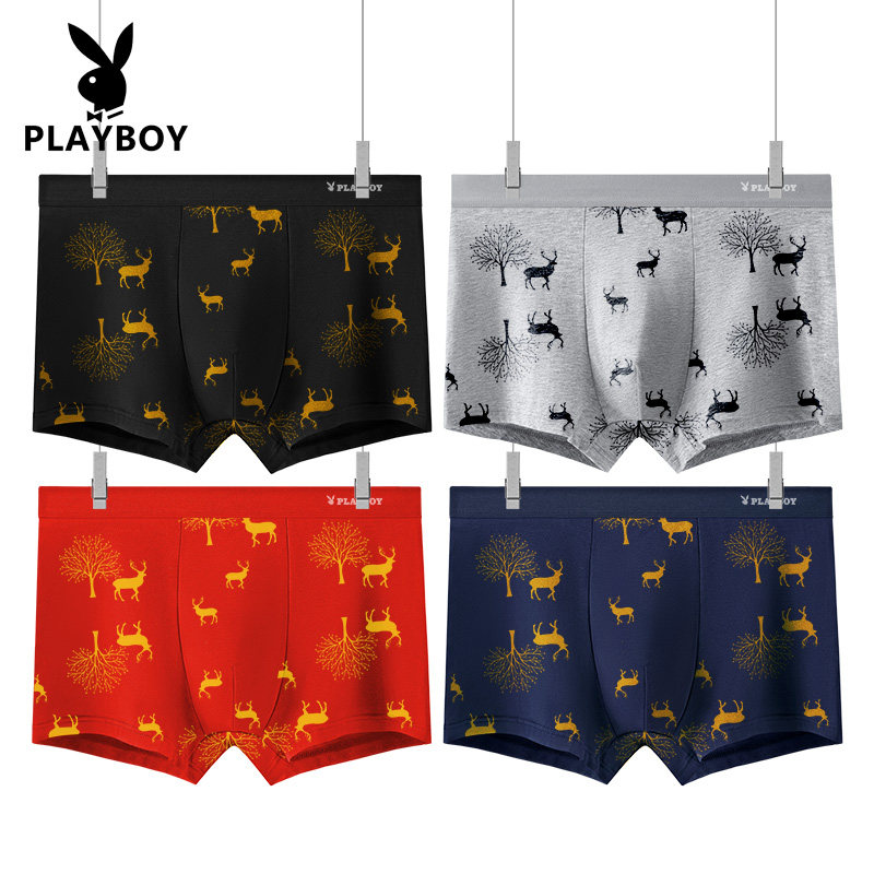 正品花花公子男士内裤2025新款纯棉透气男生平角裤头全棉四角短裤